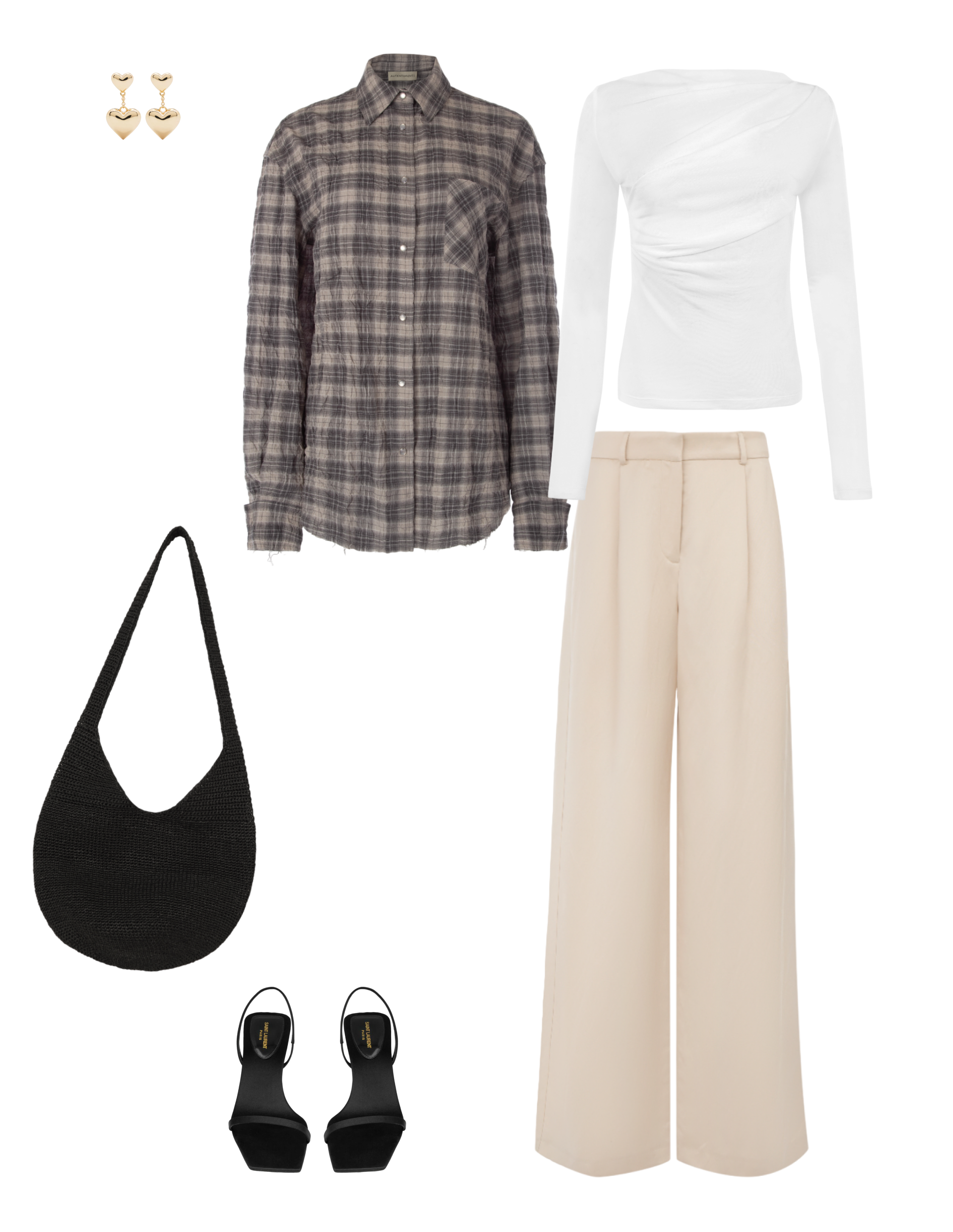 Чтобы добавить в образ нотку расслабленности, накиньте сверху оверсайз рубашку в клетку и возьмите плетеную сумку на длинном ремне.