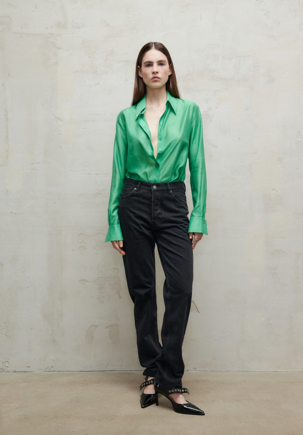 Джинсы прямого кроя – одна из самых универсальных моделей вне времени. Прямые джинсы подчеркнут силуэт, но не будут сковывать движений, поскольку они не должны плотно прилегать к телу. Посадка может быть любой – от классической высокой до трендовой низкой посадки на бедрах. Длина также зависит от ваших индивидуальных предпочтений, но в этом сезоне мы рекомендуем остановиться на изделиях с полной длиной, закрывающей часть подошвы обуви.