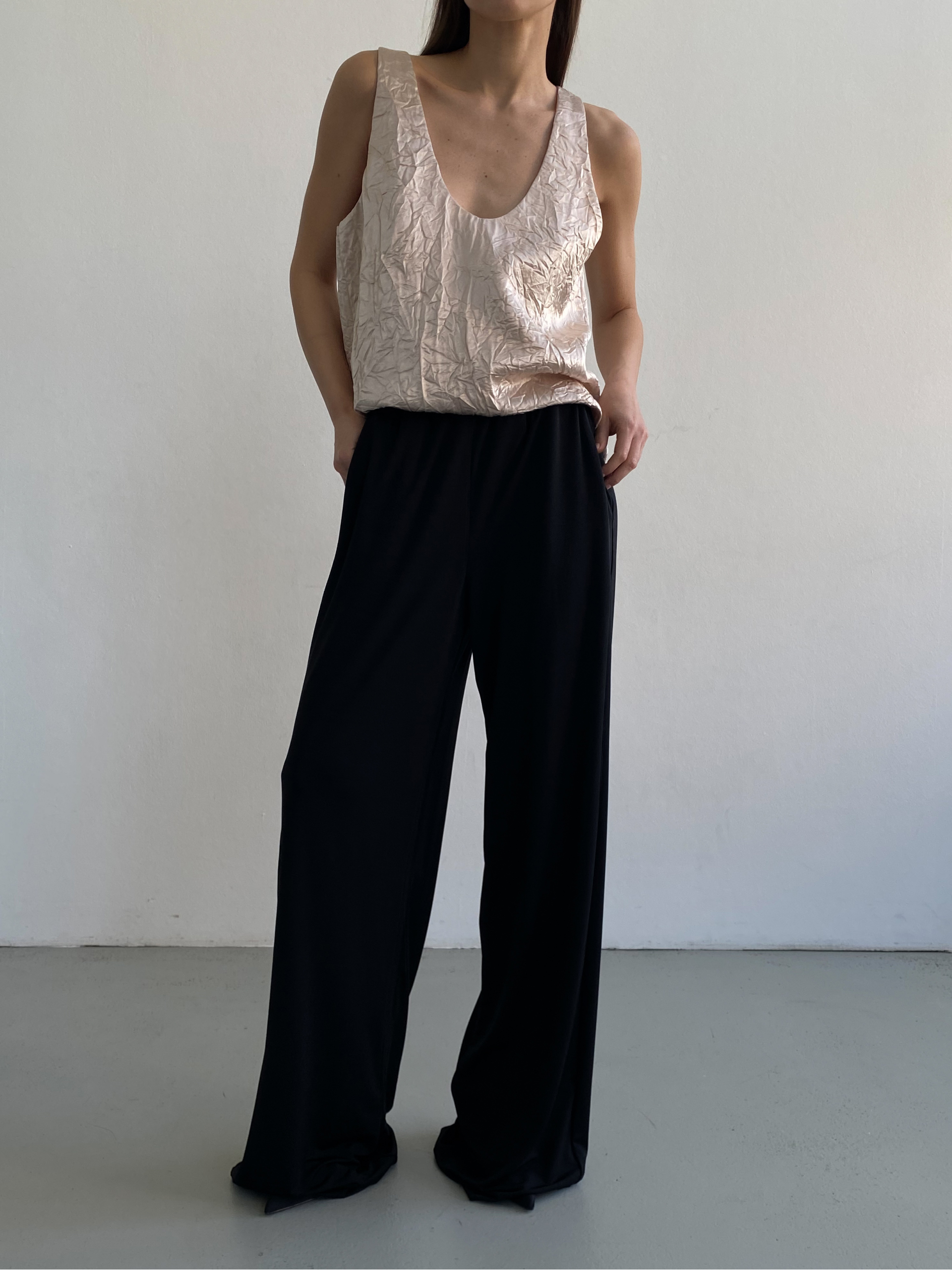 Брюки палаццо – база делового гардероба и отличная альтернатива прямым брюкам в теплое время года. Облегающая одежда может вызывать дискомфорт в жару, поэтому расслабленные костюмные брюки будут идеальным вариантом для создания стильного летнего образа. Выбирайте брюки из легких тканей, таких как лен или натуральный хлопок, чтобы ваша кожа могла дышать.