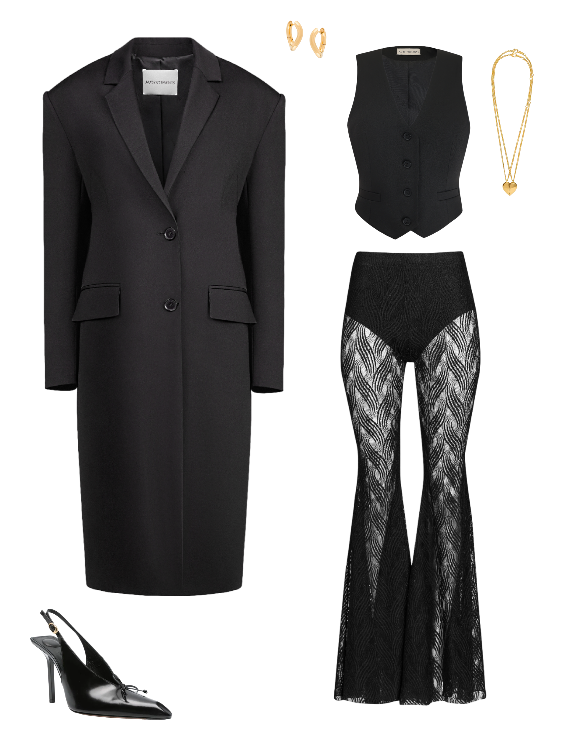 Брюки клеш BIANCA из гипюра, жилет WALL STREET и пальто-жакет MALCOM
