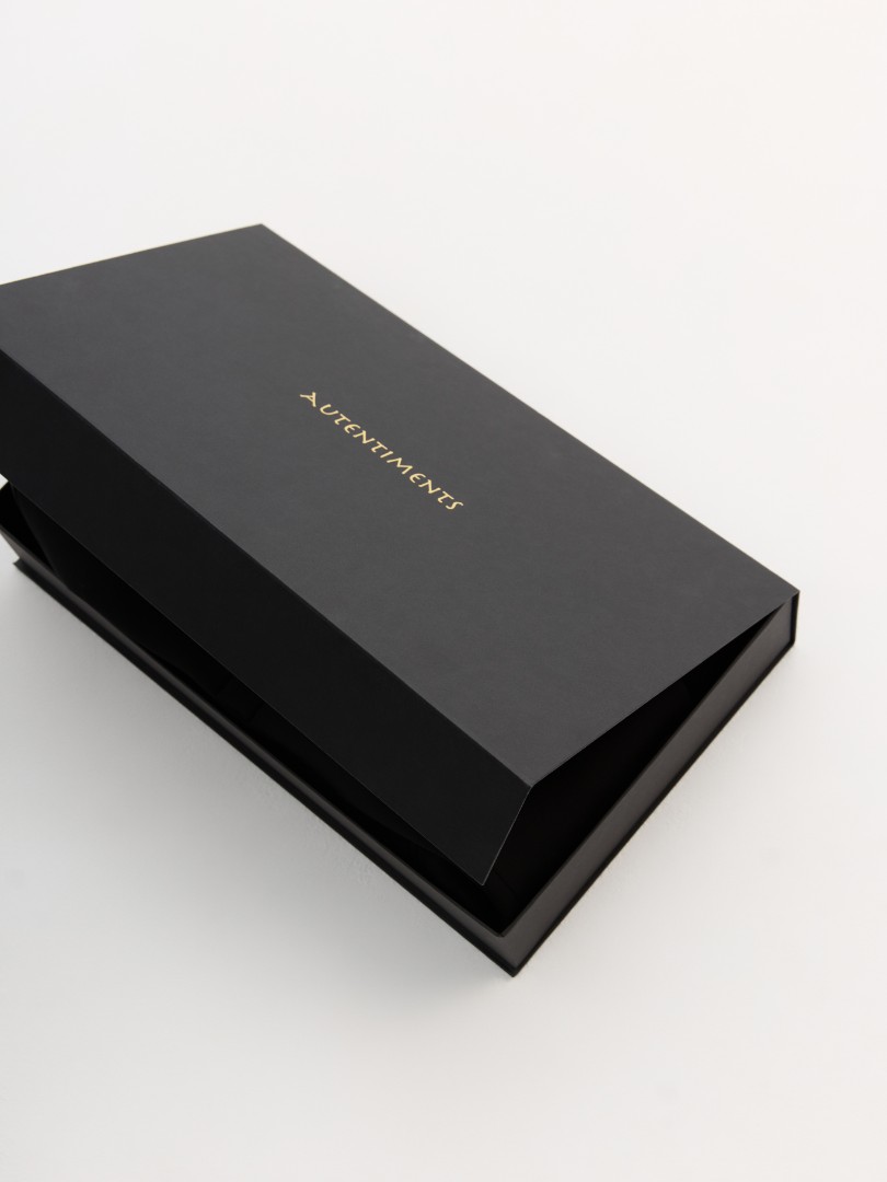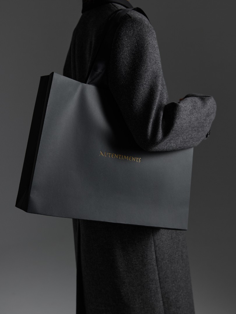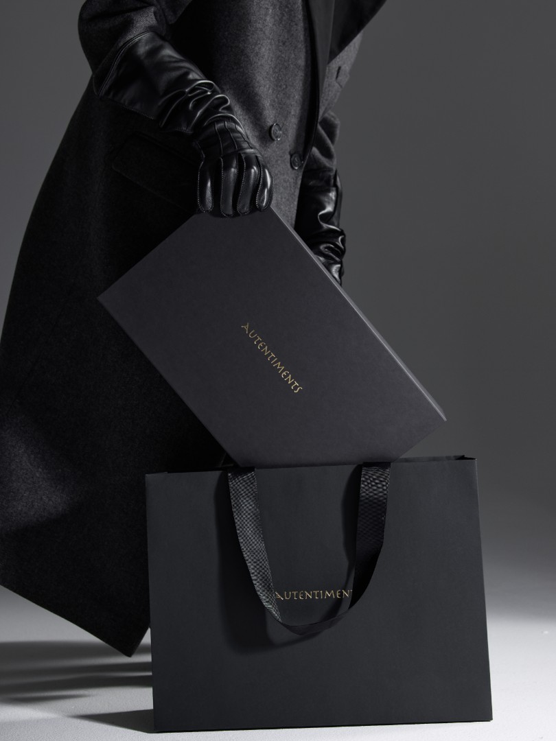 Подарочная упаковка с фирменным логотипом Autentiments: коробка на магнитной застежке и пакет с ручками-лентами. Размер коробки: 44*27*7. Идеально подойдет для упаковки платья, блузы или трикотажных изделий.