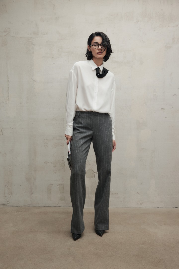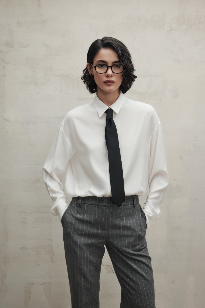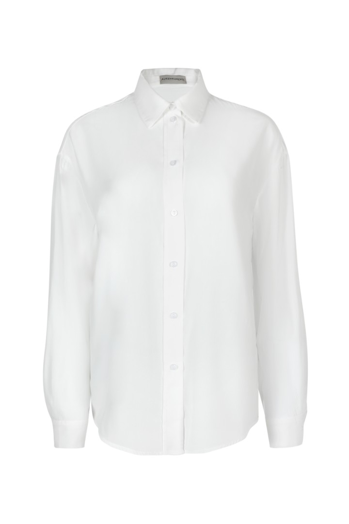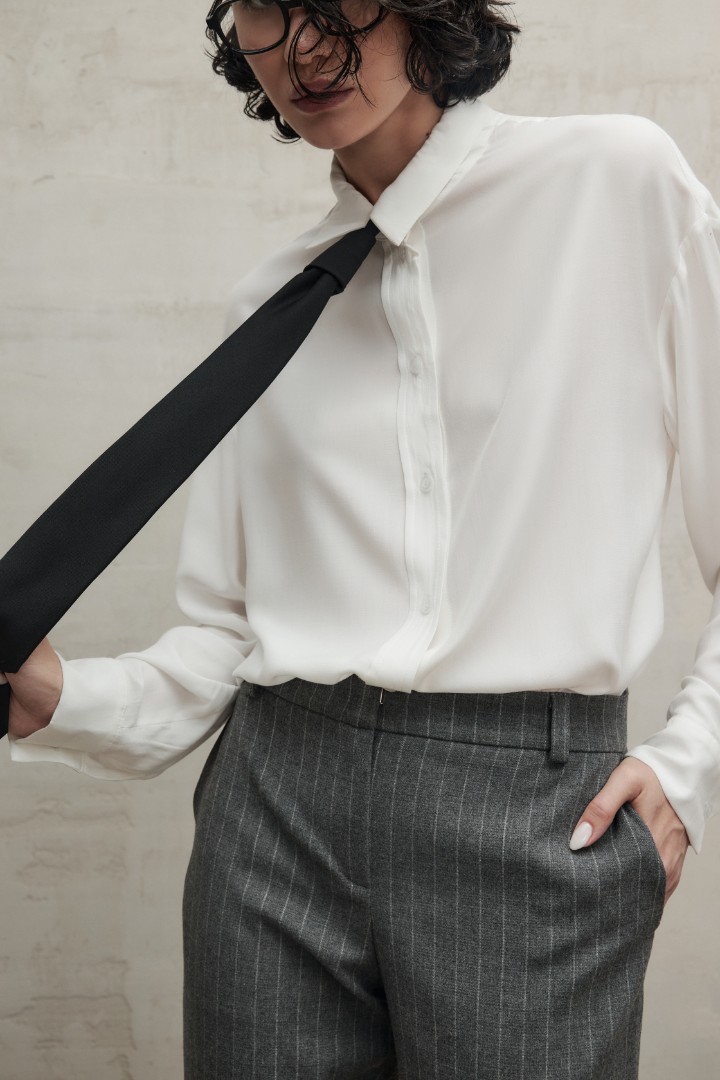 Классическая рубашка со спущенной линией плеч – привычная вещь в гардеробе, независимо от сезона. Свободный крой, удлиненный рукав, классический воротник, манжеты и струящийся материал – никаких лишних деталей. Эта модель подойдет как для повседневного расслабленного, так и для женственного делового образа.