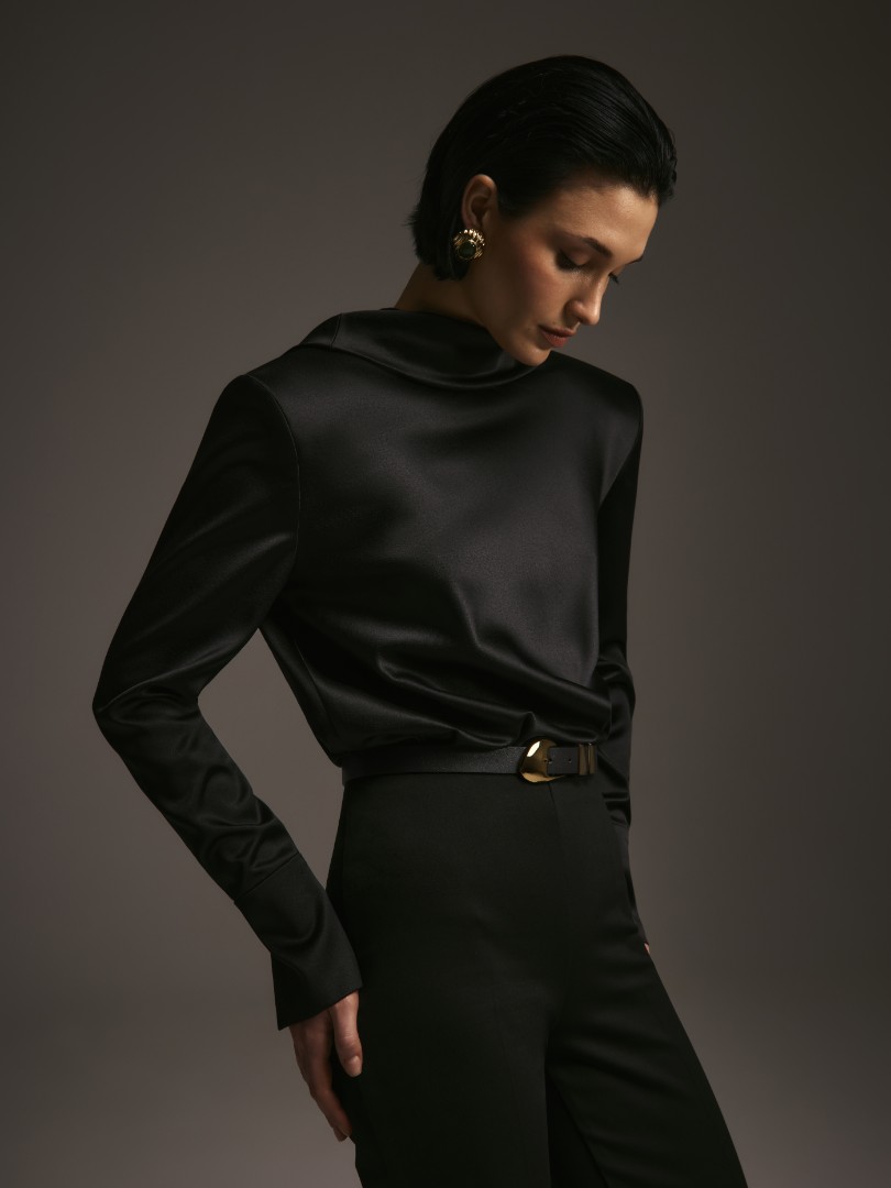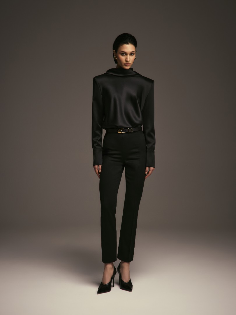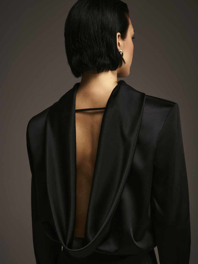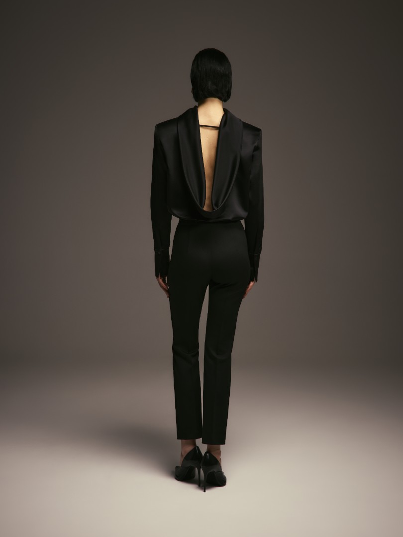 Боди с сигнатурной для коллаборации деталью – качелью на спине – является символом баланса между праздником и спокойствием. Боди отлично впишется в женственный гардероб, а также составит законченный сет с брюками AV. MONTAIGNE из коллаборации брендов.