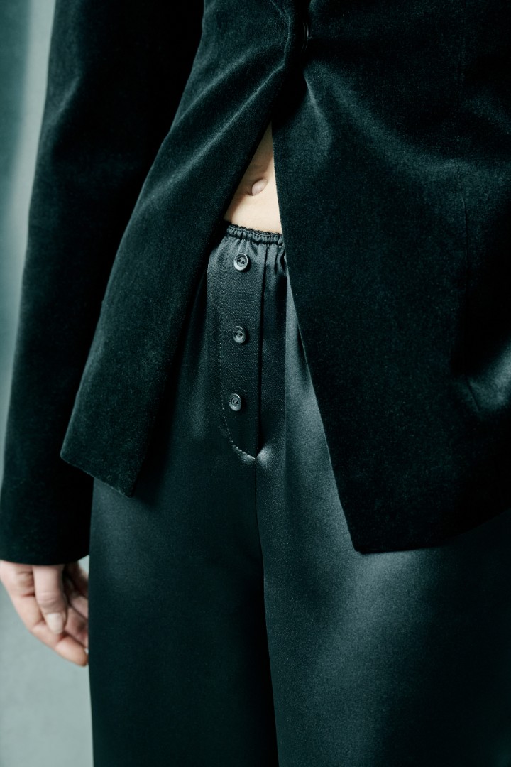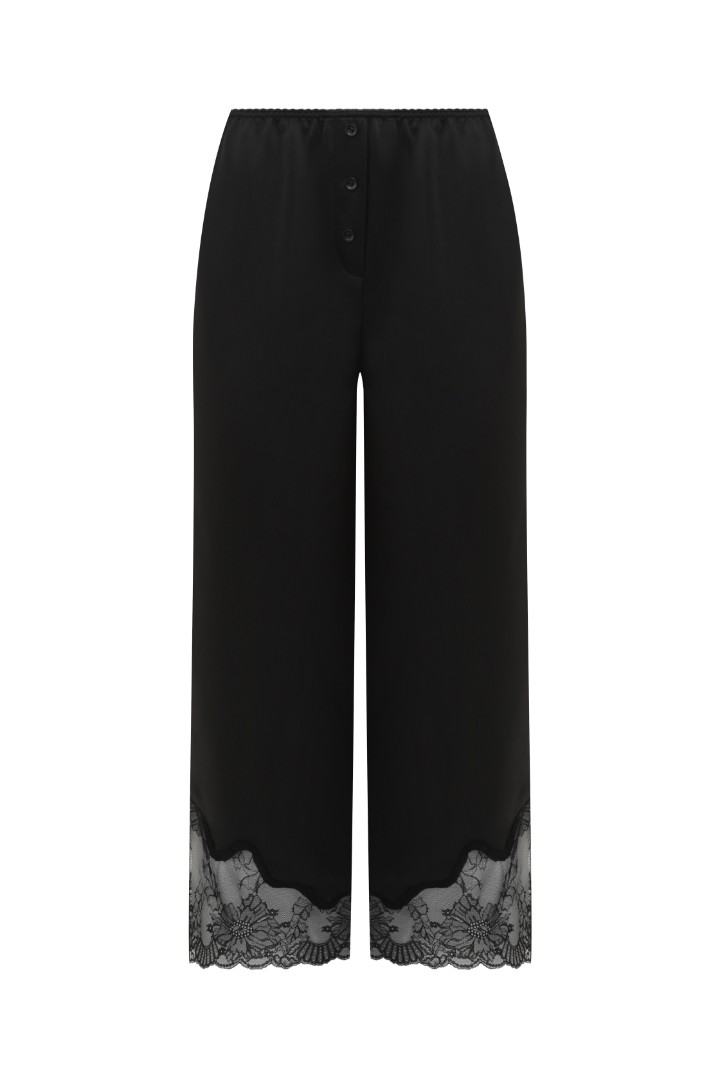 Укороченные брюки в бельевом стиле с кружевной вставкой. Сдержанная вариация изделия из кружева, подходящая для всевозможных образов, снижая уровень откровенности и добавляя ощущение внутреннего и внешнего комфорта.