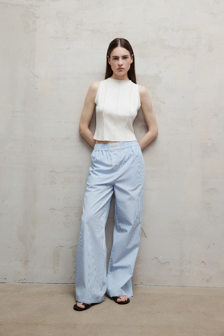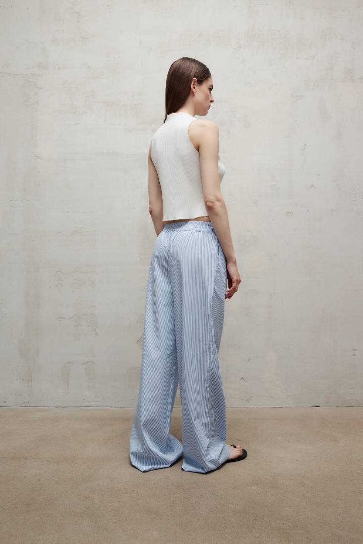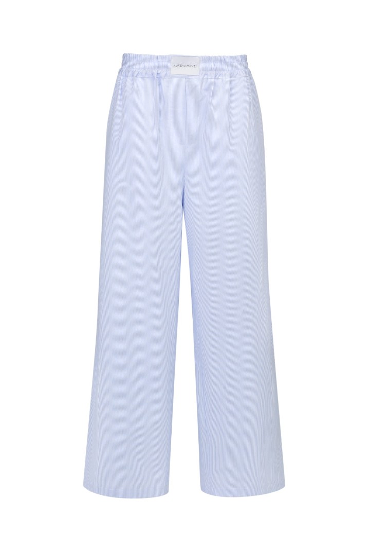 Брюки из натурального хлопка в пижамном стиле. Модель с широкими свободными брючинами и эластичной резинкой на талии с шевроном Autentiments. Сочетайте брюки с рубашкой BEACH из нашей коллекции.