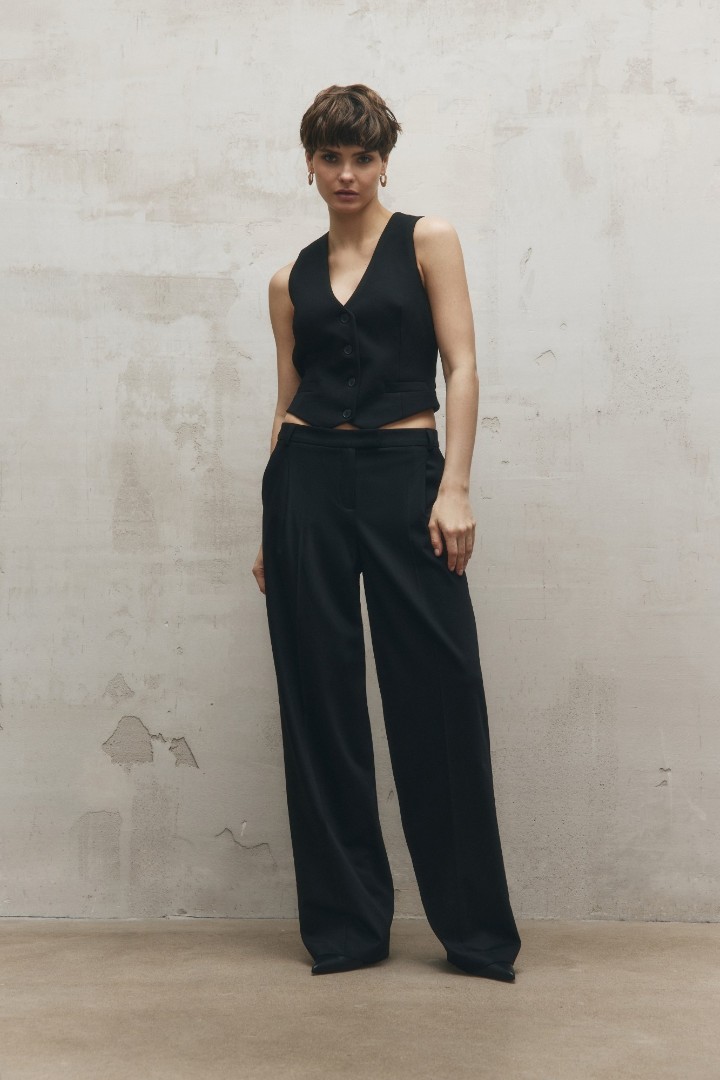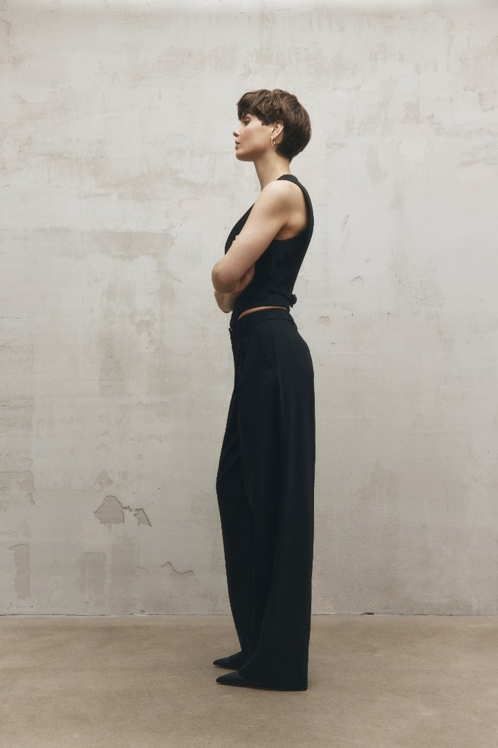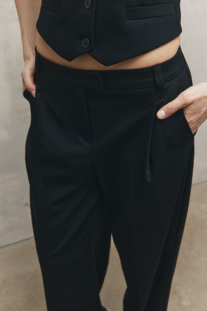 Прямые брюки свободного кроя Daddy со средней посадкой. Модель дополнена стрелками по всей длине и классическими врезными карманами. Лаконичные Daddy легко интегрировать в базовый гардероб или использовать для более торжественных выходов.