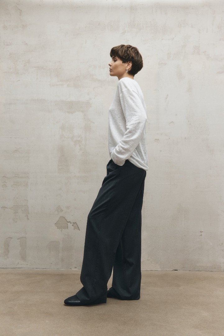 Прямые брюки свободного кроя Daddy со средней посадкой. Модель дополнена стрелками по всей длине и классическими врезными карманами. Лаконичные Daddy легко интегрировать в базовый гардероб или использовать для более торжественных выходов.