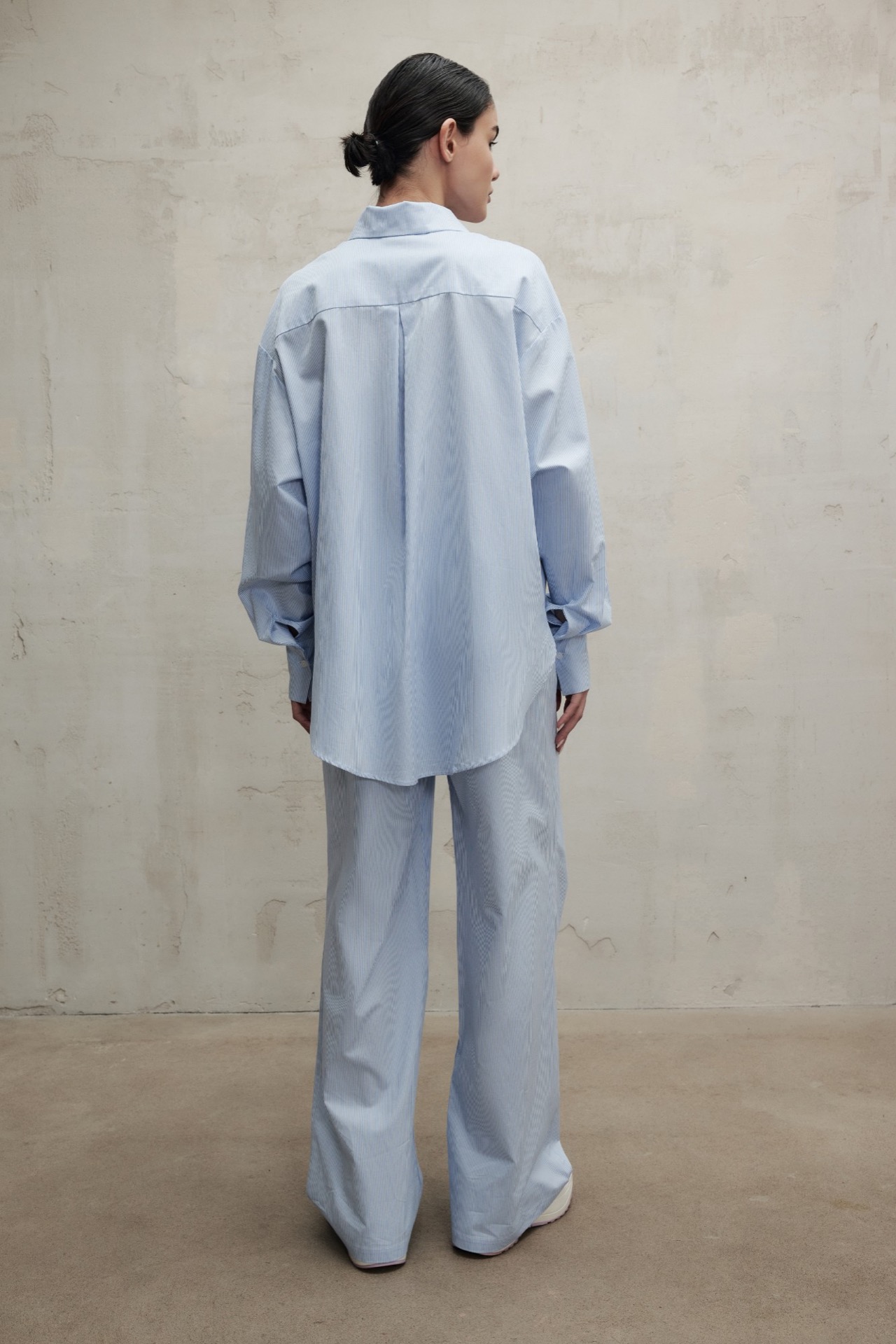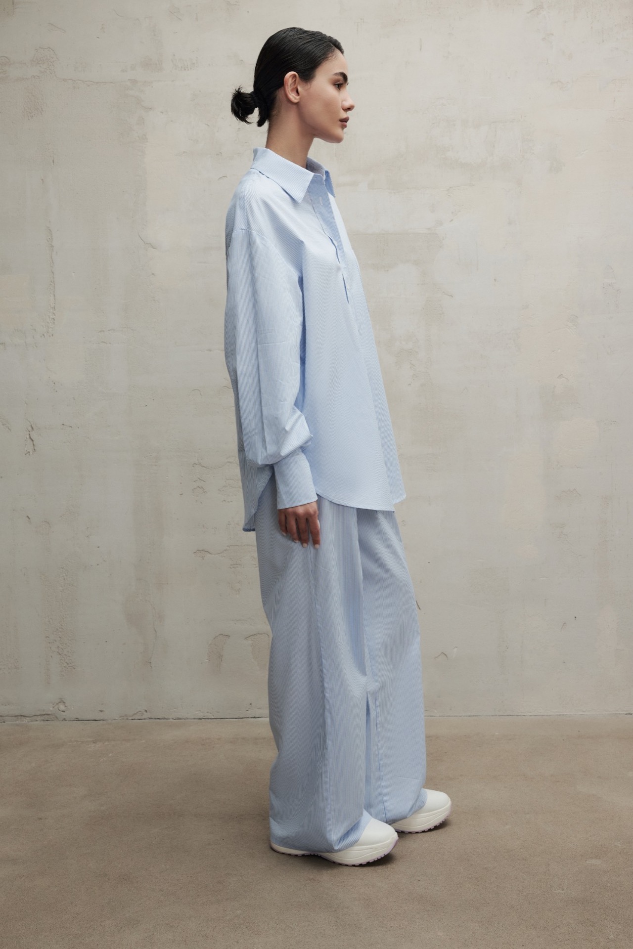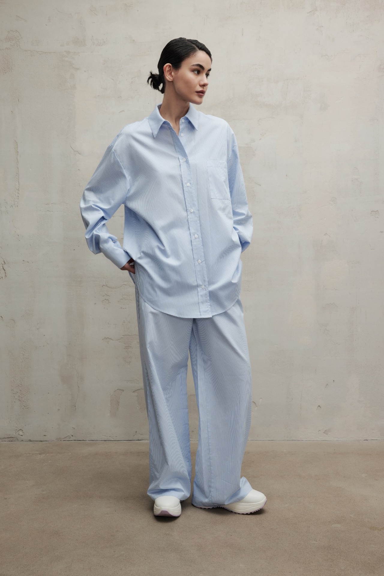 Брюки из натурального хлопка в пижамном стиле. Модель с широкими свободными брючинами и эластичной резинкой на талии с шевроном Autentiments.