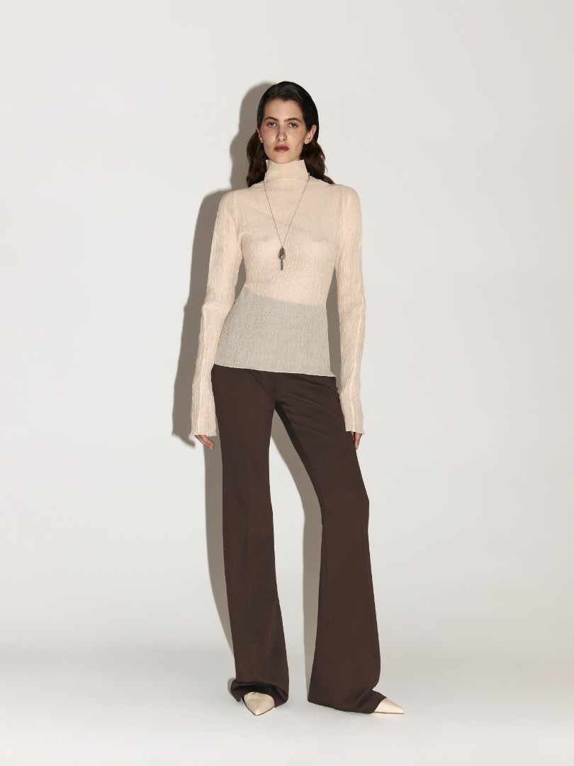 Расклешённые брюки из костюмной ткани. Модель на завышенной талии со стрелками. Изделие составит законченную композицию с жакетом BAILEYS из коллекции бренда.