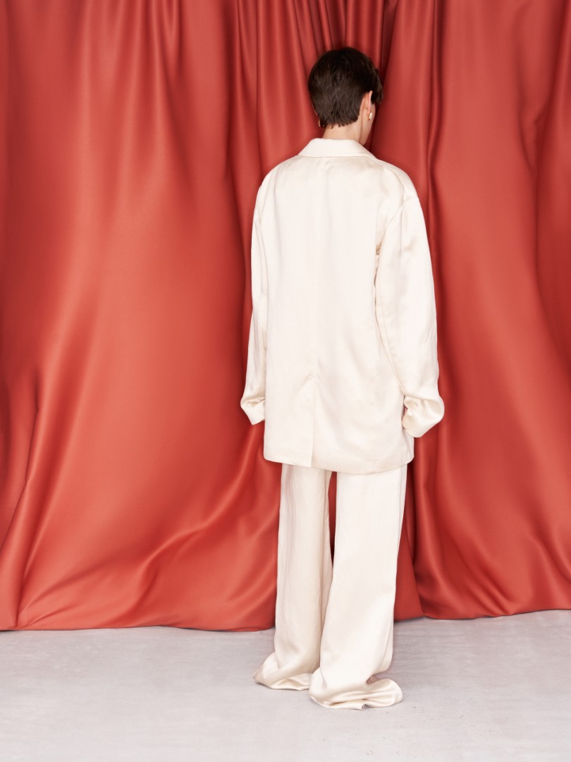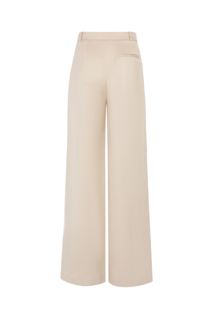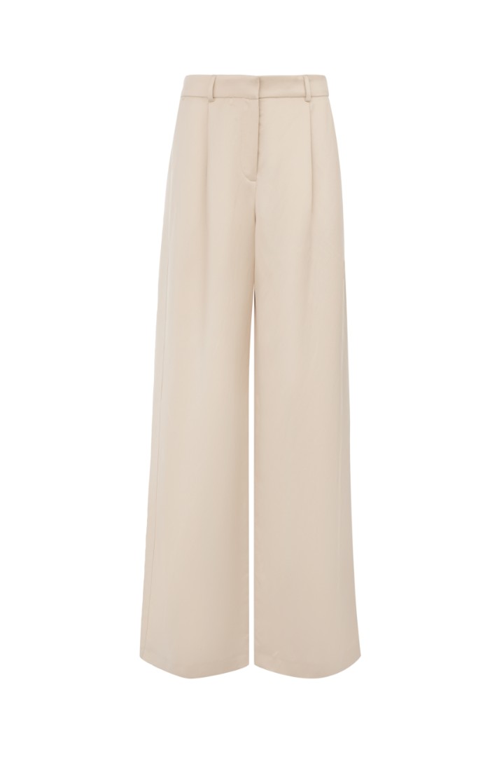 Удлиненные широкие брюки из льна – абсолютный must-wear сезона. Защипы образуют деликатные складки, делая силуэт расслабленным и женственным. Модель объединила в себе комфортный свободный крой и особенный материал, подходящий для роскошного ужина или прогулки летним днем. Для создания эффектной костюмной пары сочетайте с жакетом RICH WIFE из той же ткани.