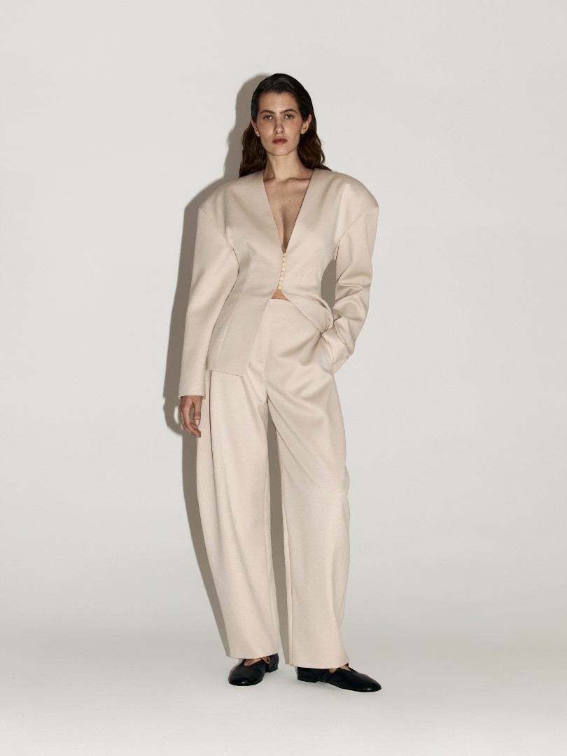 Костюмные брюки baggy фигурного силуэта с высокой посадкой и свободным кроем, зауженные к низу. Perfect match с жакетом ST. HONORE из той же ткани.