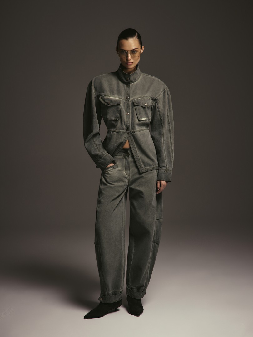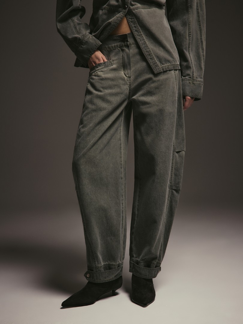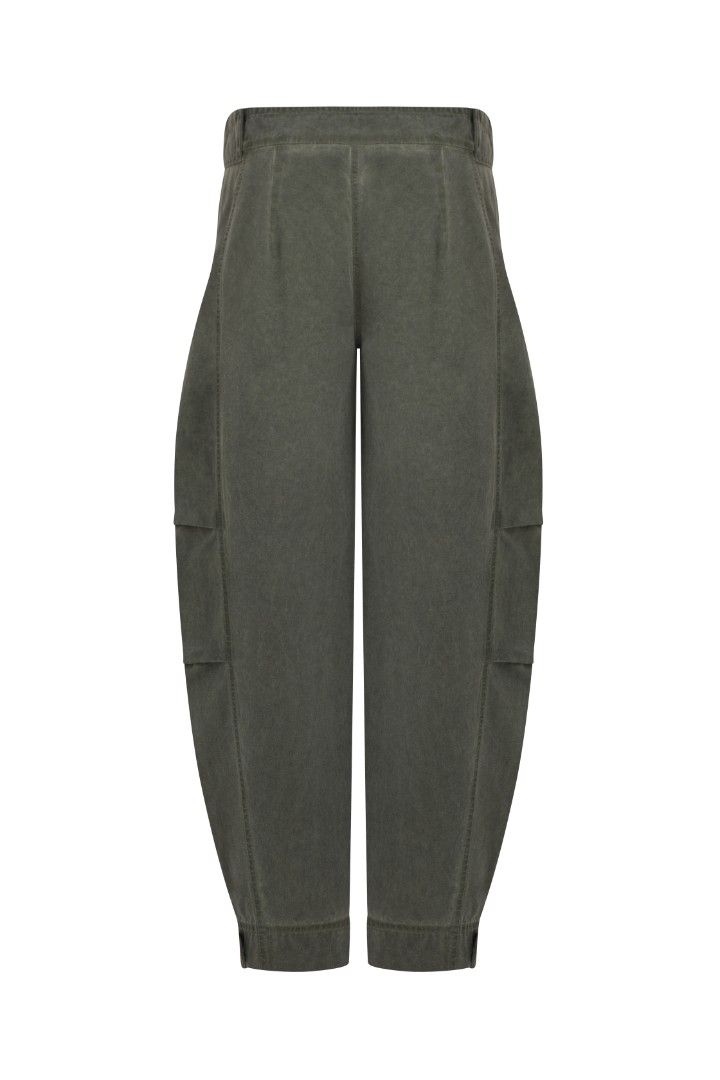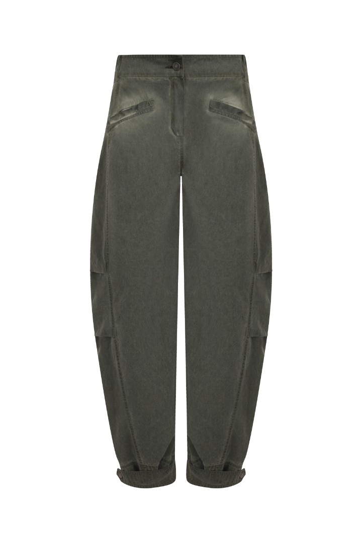 Брюки силуэта "баллон" из плотного вареного хлопка. Модель декорирована манжетами на кнопках по низу брючин и вставками по бокам.