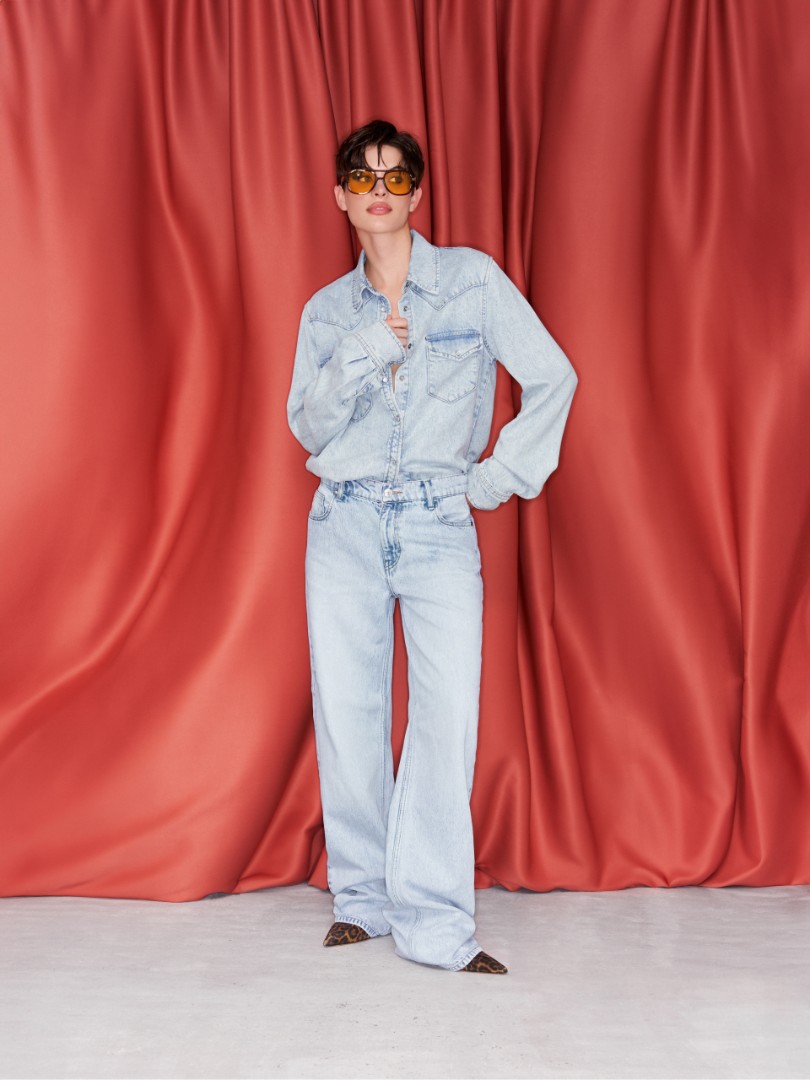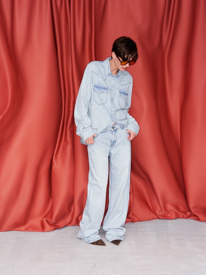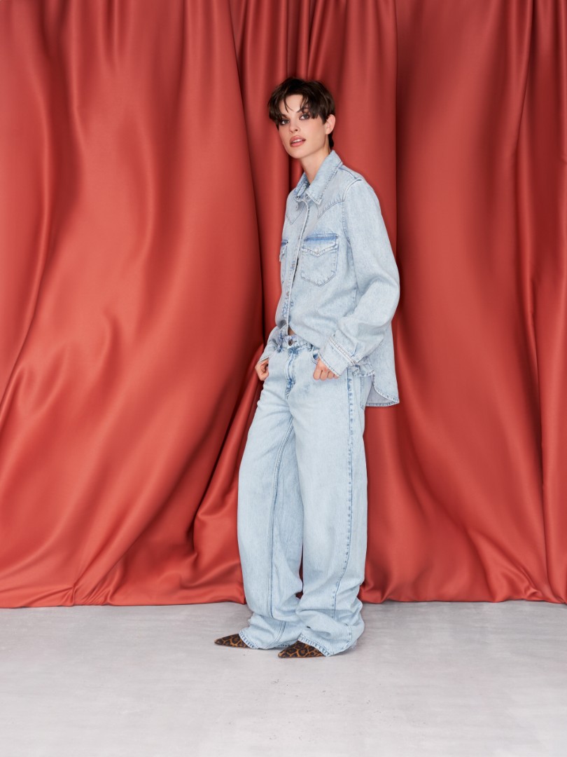 Свободные джинсы на средней посадке из облегченного денима – безупречная база летнего гардероба. Выбеленный голубой оттенок с эффектом делаве придает изделию винтажный вид. Идеально сочетается с рубашкой CANADIAN SET и топами в бельевом стиле.