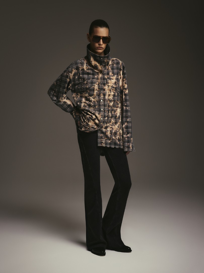 Джинсы boot cut со средней посадкой, расклешенные от колена. Эластан в составе ткани обеспечивает комфортную посадку по фигуре. Модель декорирована вертикальной вставкой по боковому шву и необработанным нижним краем.