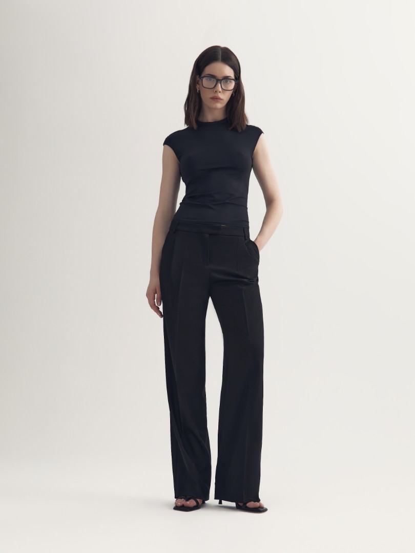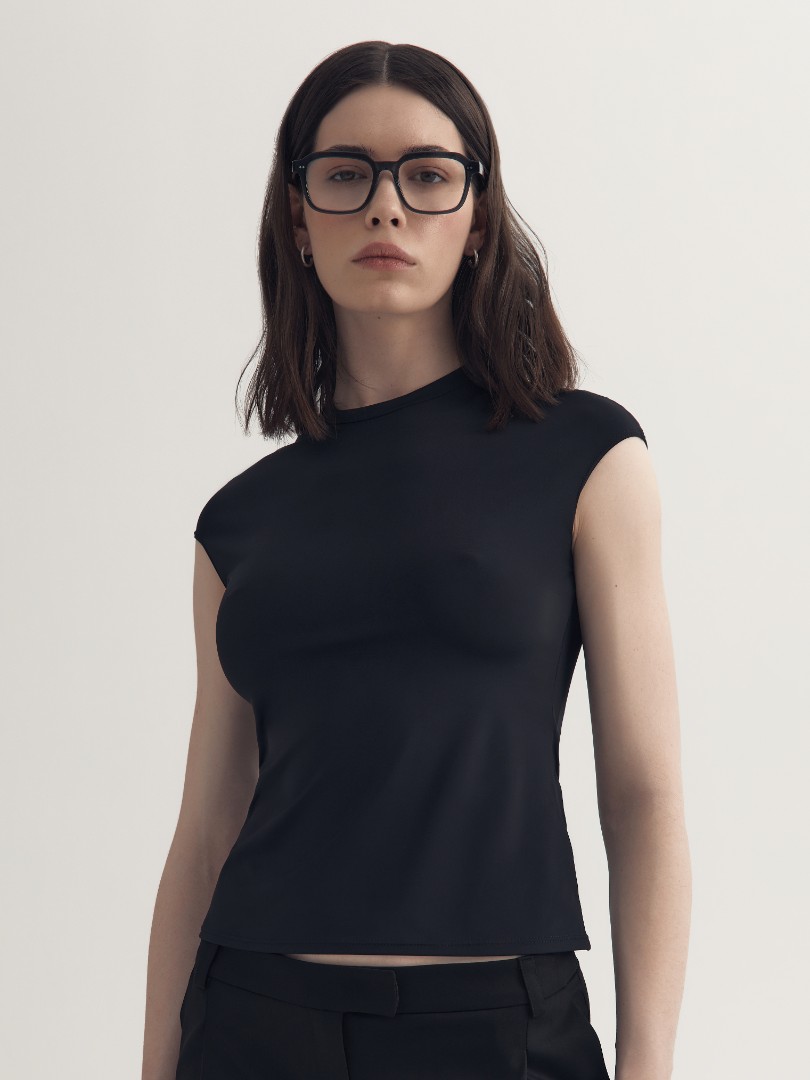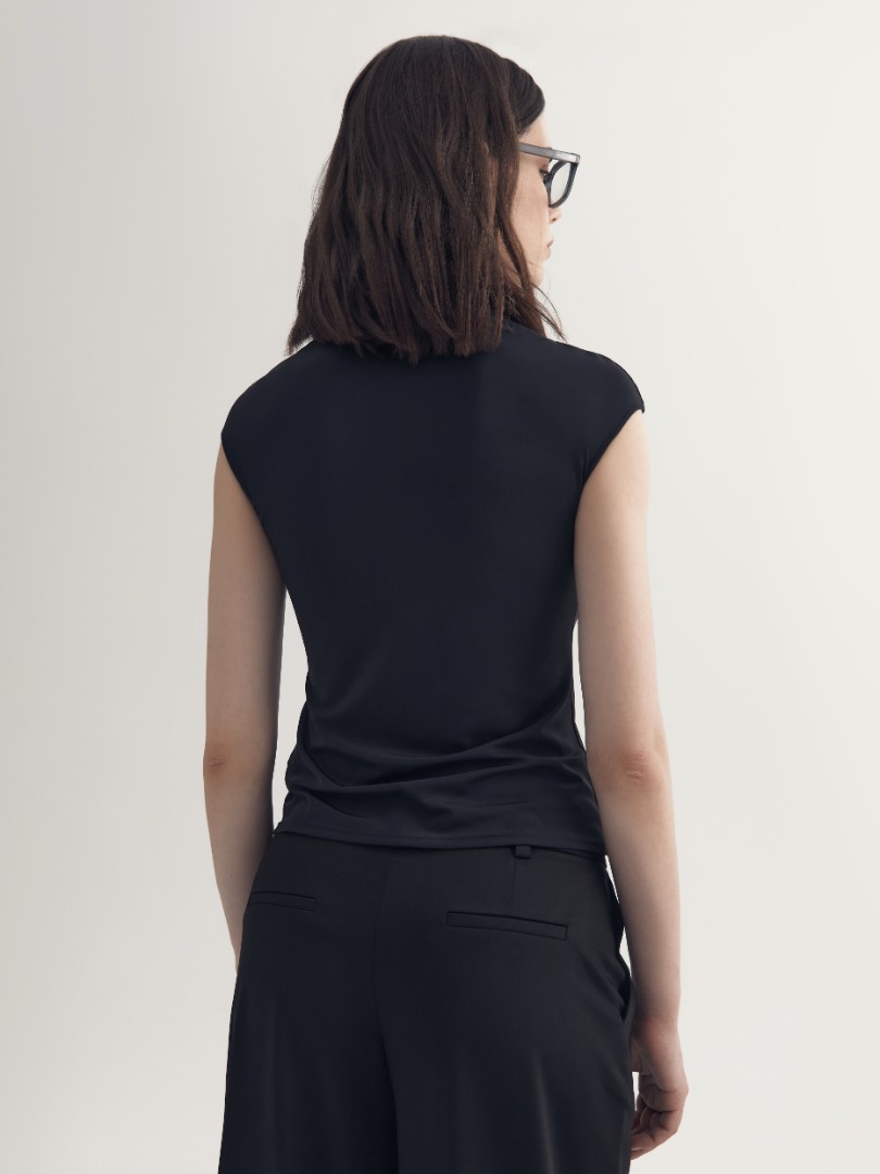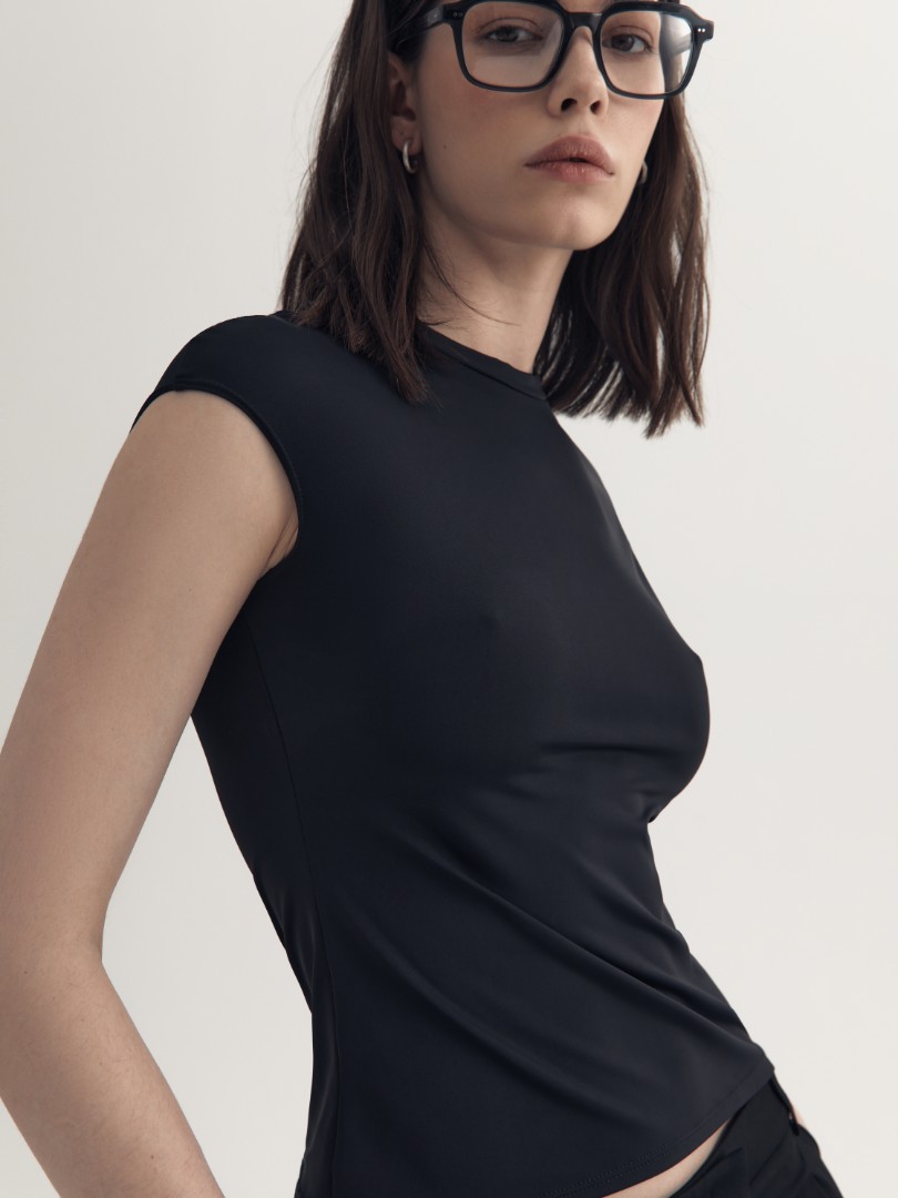 Облегающая футболка из эластичного бамбукового волокна. Лаконичная модель, декорированная высоким круглым вырезом, подходит для создания как повседневных, так и элегантных вечерних образов.