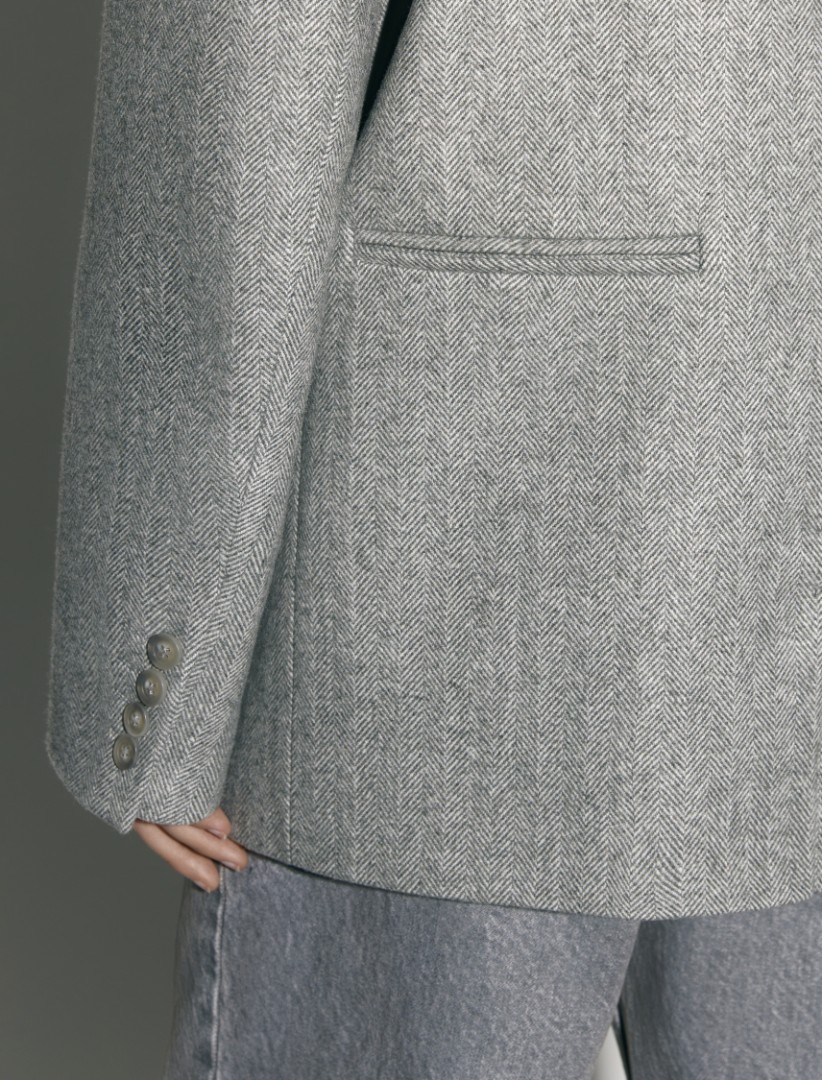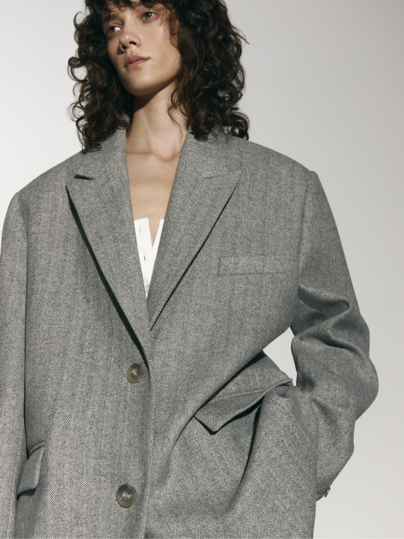 Бушлат оверсайз кроя из плотной шерсти с подплечниками. Маскулинный стиль изделия сочетает в себе лёгкость женской натуры наряду с величественной внутренней силой.