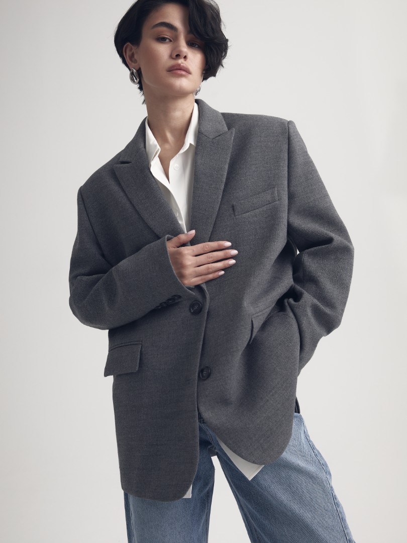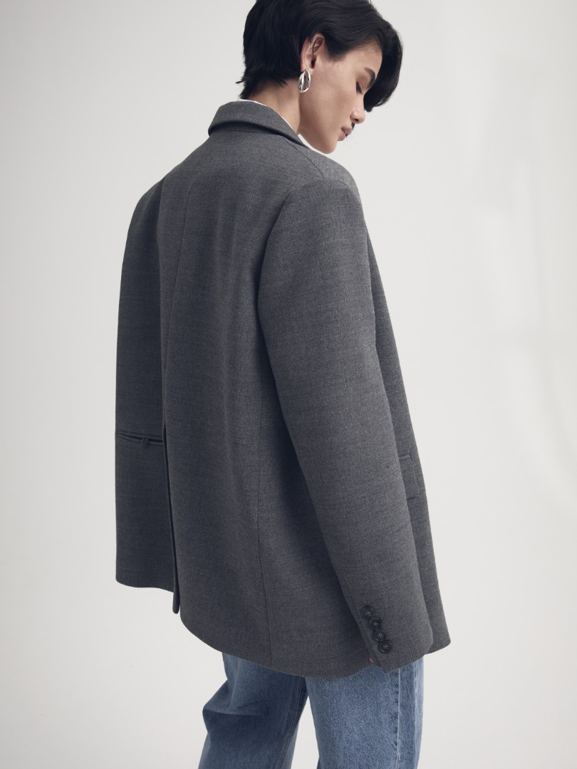 Костюмный пиджак оверсайз легко интегрируется в любой комплект и станет его прекрасным завершением. Удлиненный свободный крой придаст образу хрупкости, загадочности, наивности и в то же время подарит ощущение защищённости.