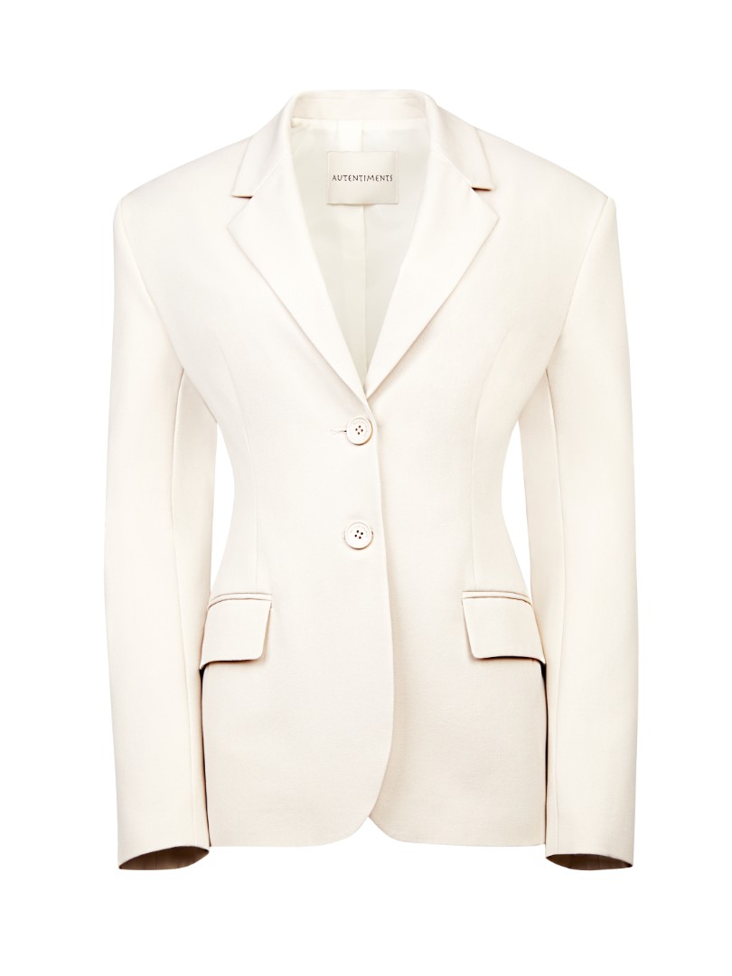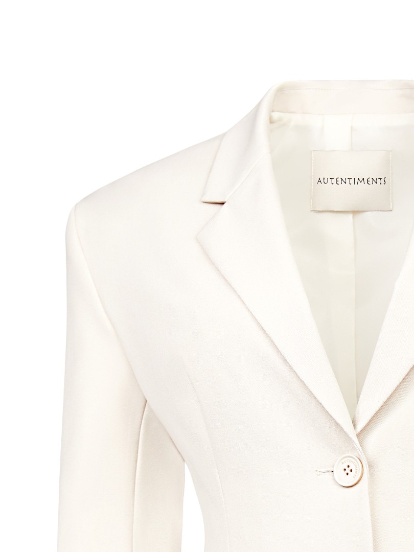 Однобортный приталенный жакет с застежкой на две пуговицы. Классическая модель с подплечниками и врезными карманами с широкими клапанами.