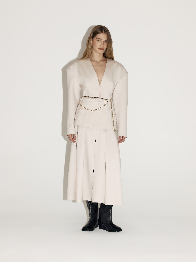 M Длина по спинке 67 см, обхват груди 104 см, обхват талии 78 см, обхват бедер 102.5 см, длина плеча 23.5 см, длина рукава 58 см;