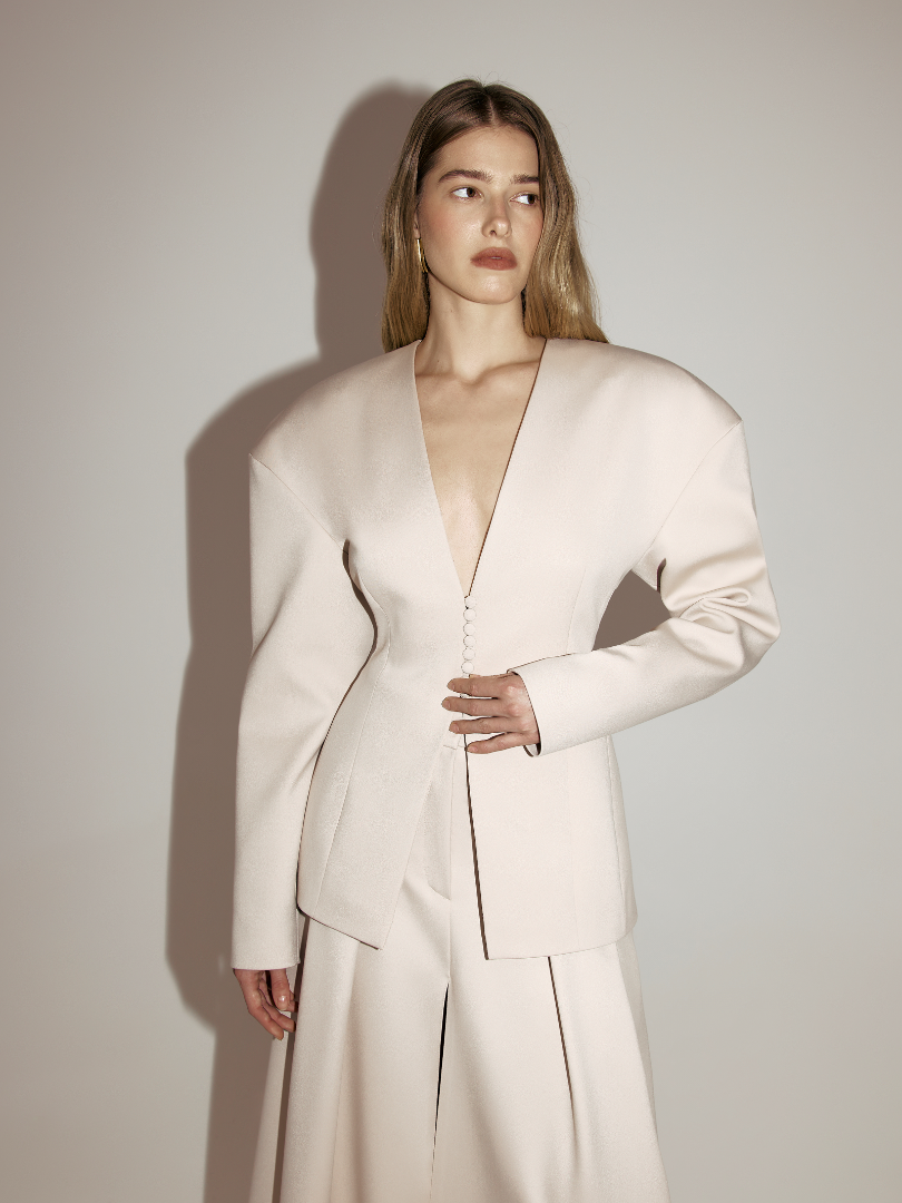 L Длина по спинке 67 см, обхват груди 108 см, обхват талии 82 см, обхват бедер 106.5 см, длина плеча 23.5 см, длина рукава 58 см