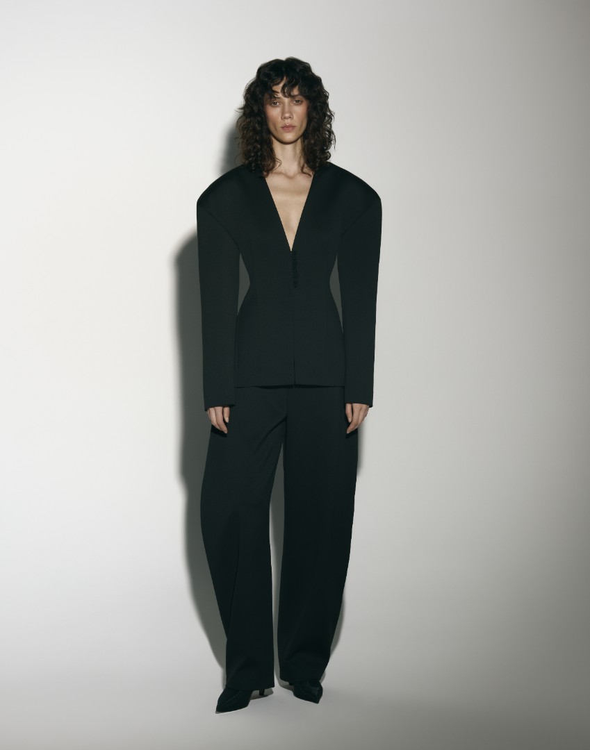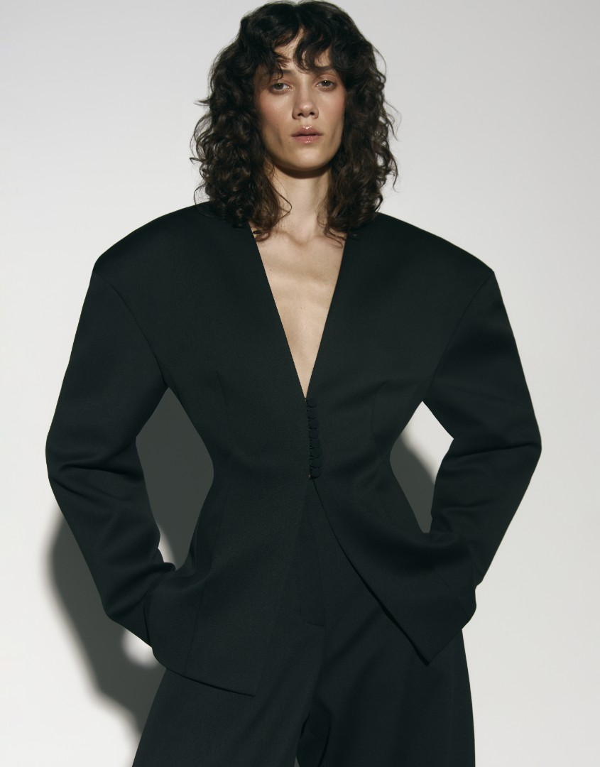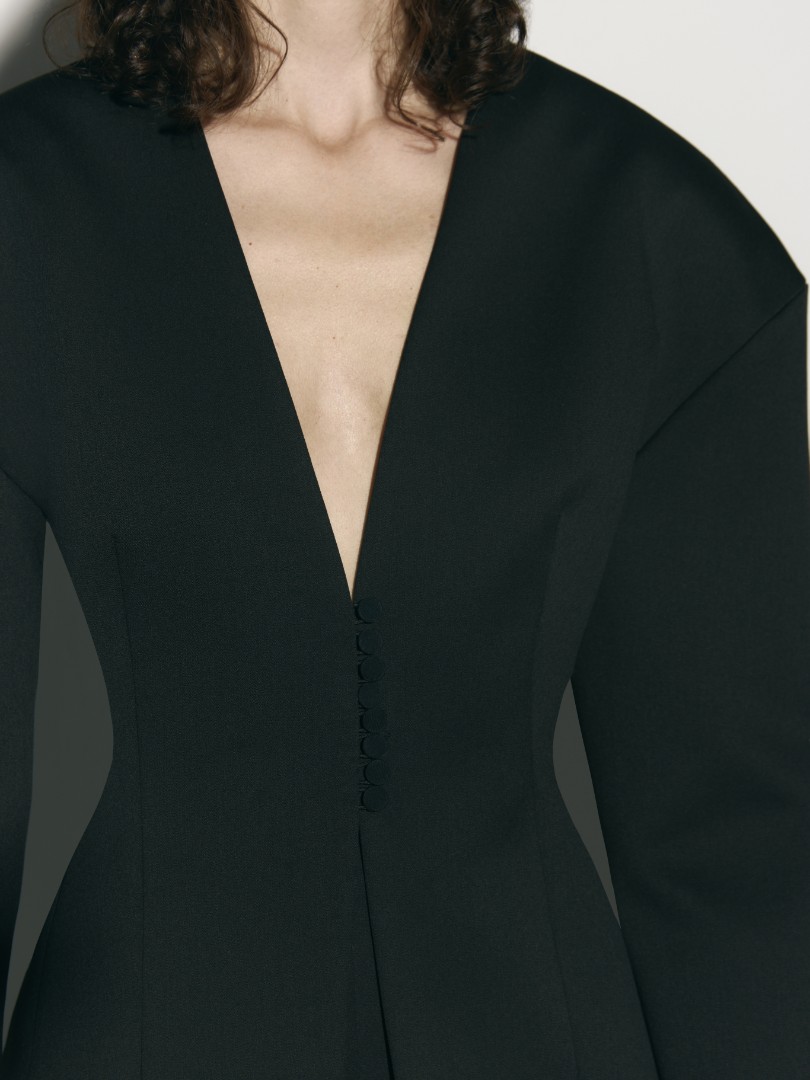 Жакет приталенного кроя с объемной плечевой линией и подплечниками, V-образным вырезом и рельефными швами. Дополните жакет брюками ST. HONORE из той же ткани – такой костюм станет отличным вариантом строгого, но в то же время женственного образа. Особенности и утонченности изделию добавляет застежка с помощью навесных петель и пуговиц.