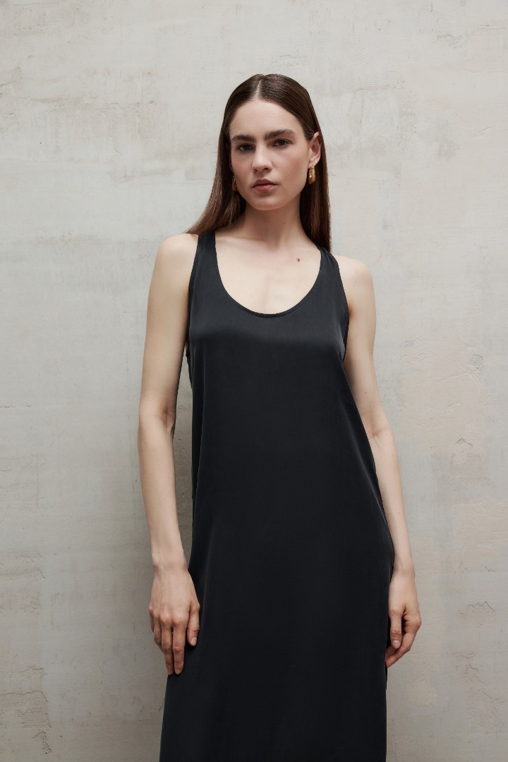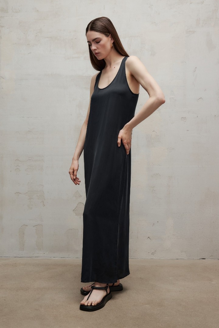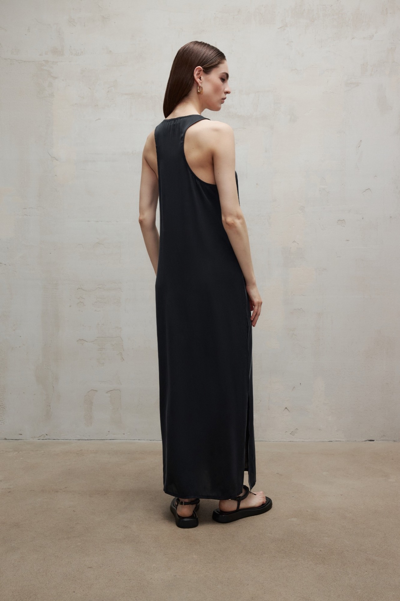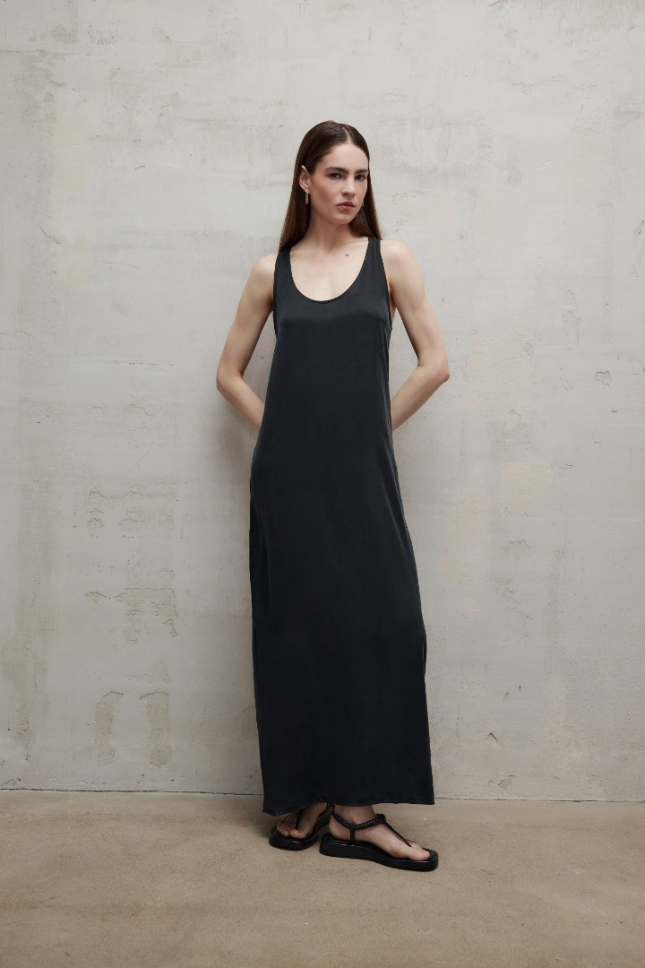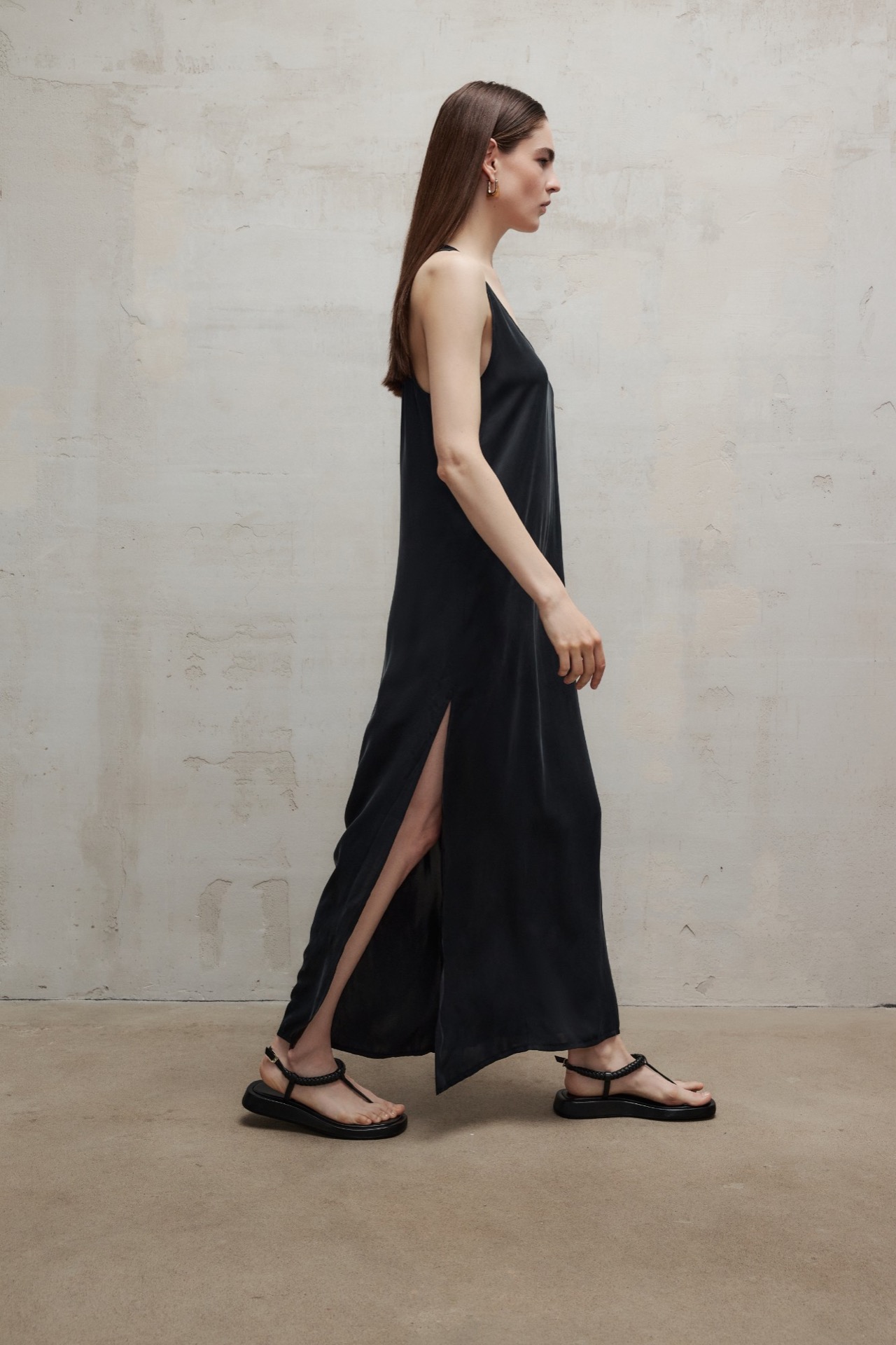 Лаконичное макси-платье расслабленного силуэта из струящейся, приятной к телу ткани с эффектом «второй кожи» – платье подарит ощущение прохлады даже в самый жаркий летний день.
