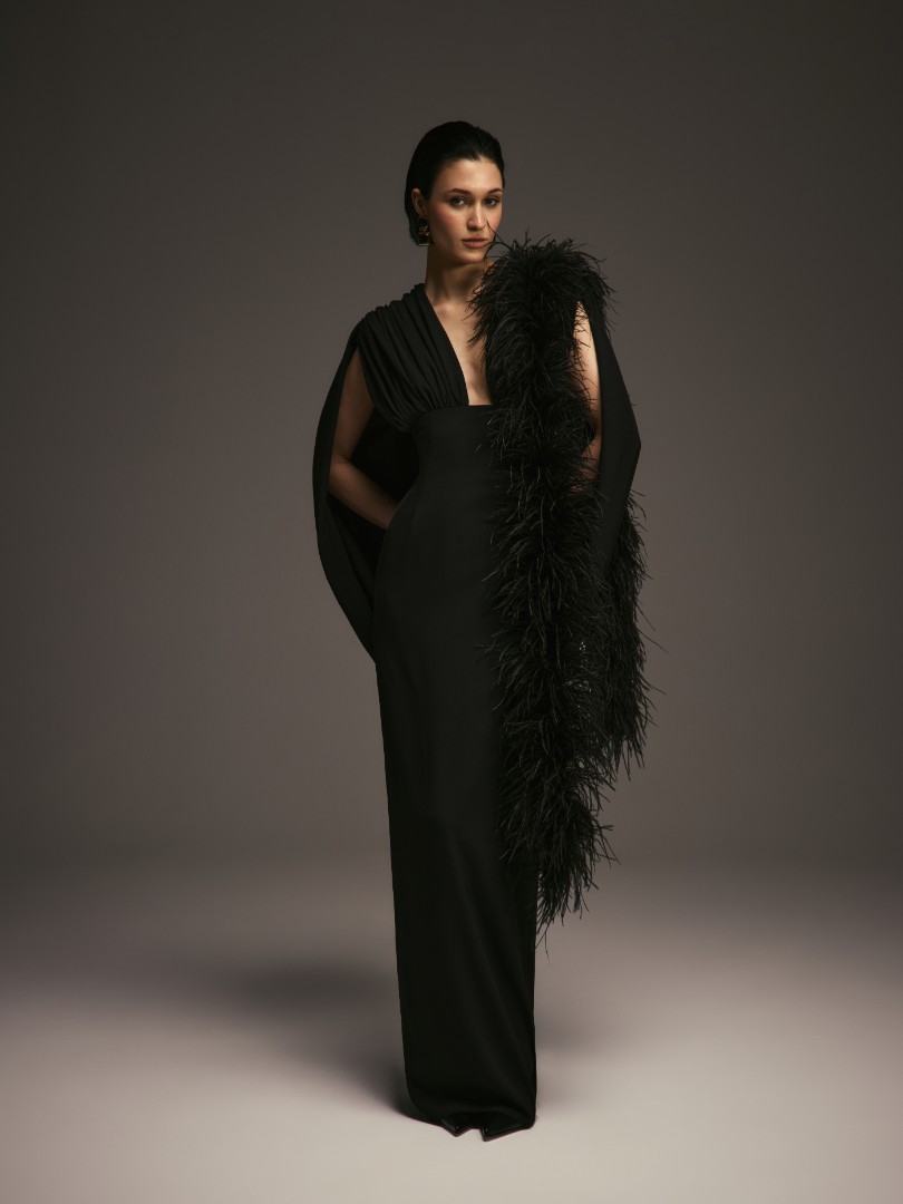 Элегантное черное платье с качелью на спине, как главный символ женской сексуальности и завораживающей силы. Платье тонко подчеркивает силуэт, а акцентная деталь создает неповторимый эффект, позволяющий ощутить себя главной героиней старого кинематографа.
