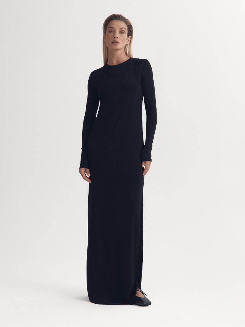 Платье из струящегося эластичного трикотажа. Прямой крой и длина макси визуально сделают силуэт более стройным, а приятная к телу вискозная ткань подарит ощущение комфорта на протяжении всего дня.