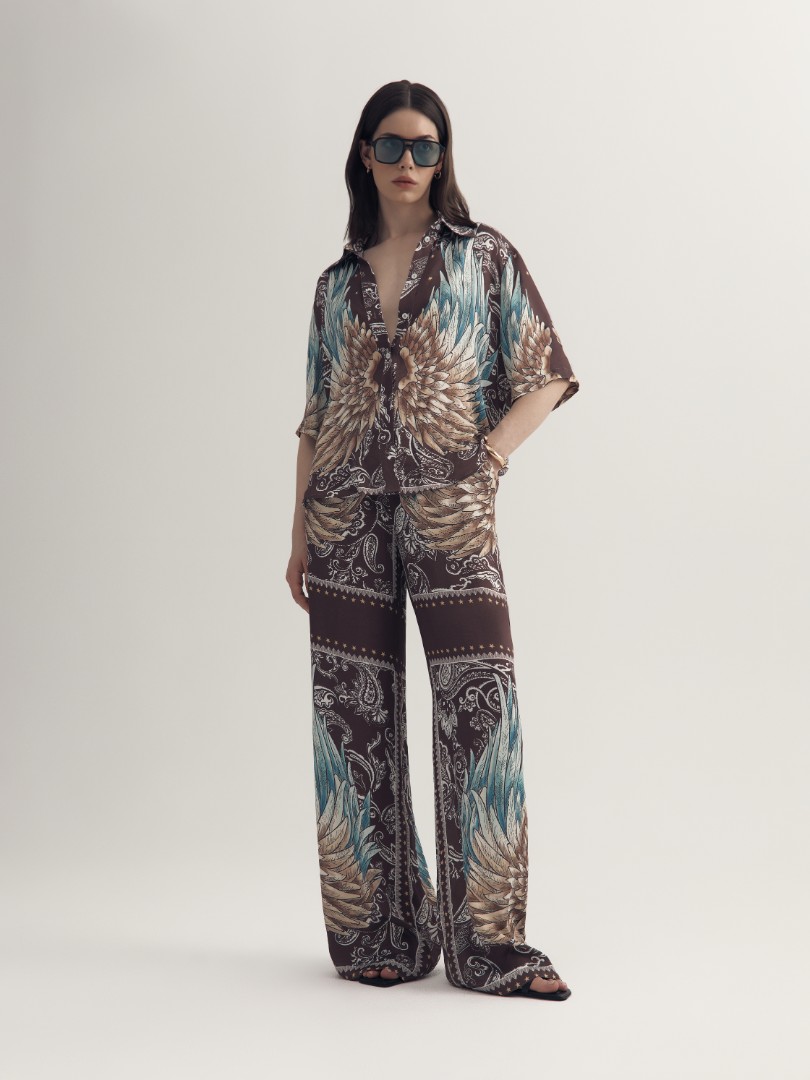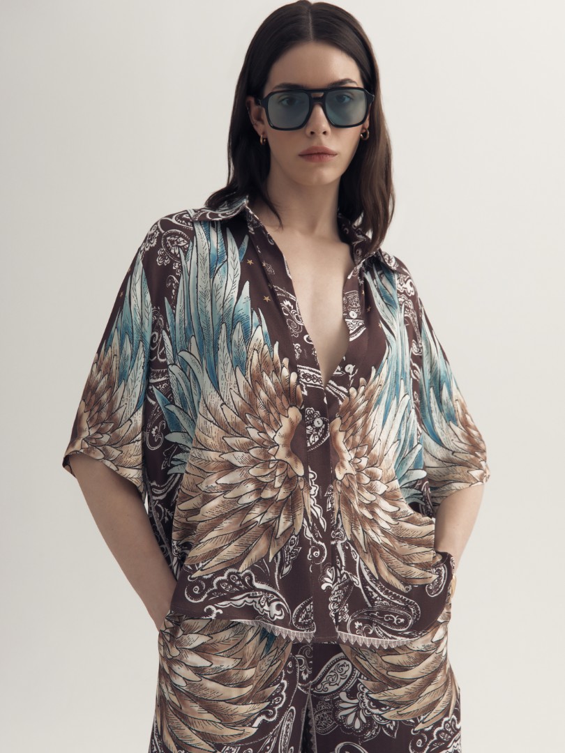 Рубашка с отложным воротником из струящейся вискозы – отличный выбор для городских прогулок и пляжного отдыха. Принт придает рубашке уникальный шарм, делая ее идеальным дополнением к вашему летнему гардеробу. Рекомендуем сочетать с брюками CORSICA или белыми джинсами ZNOI.