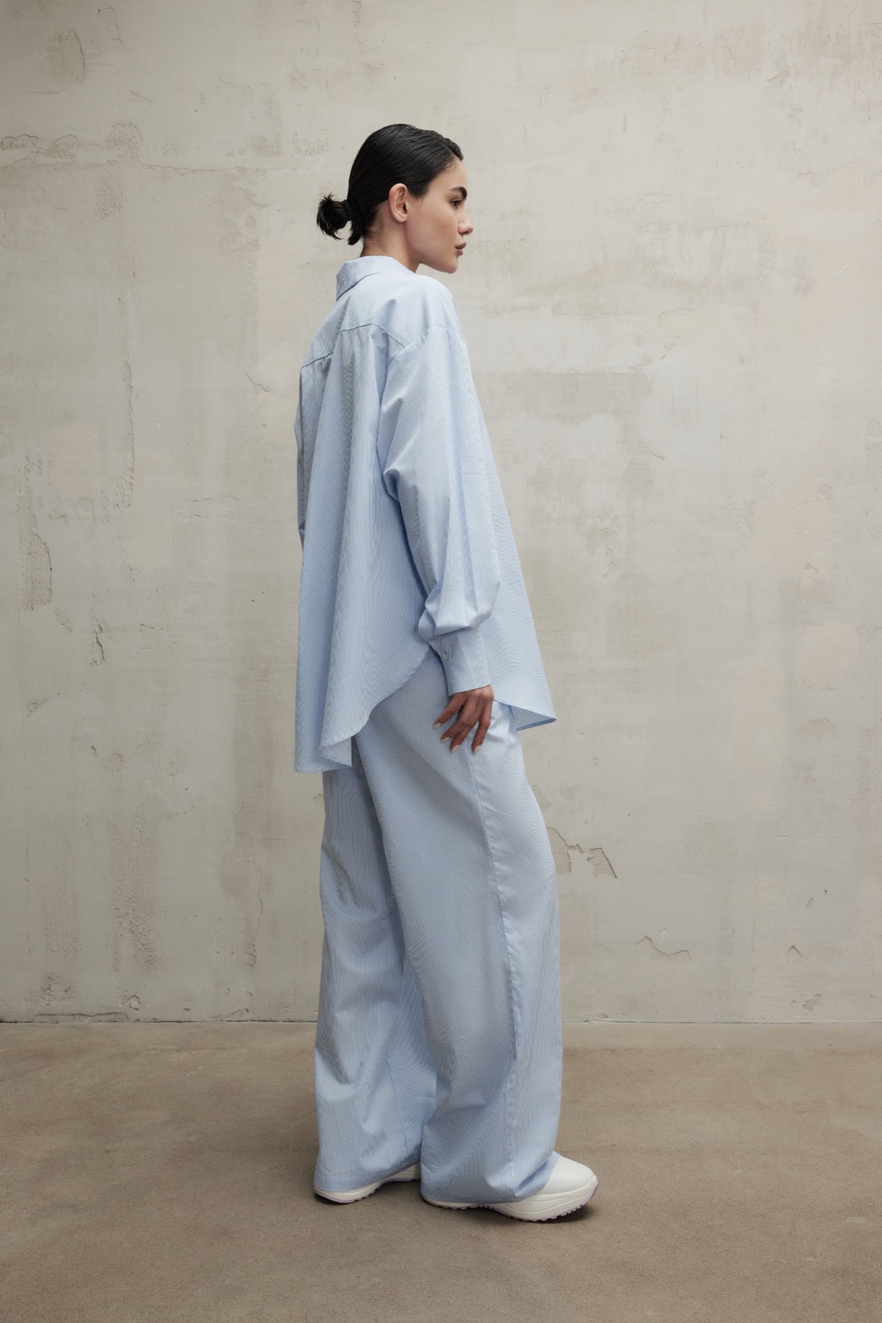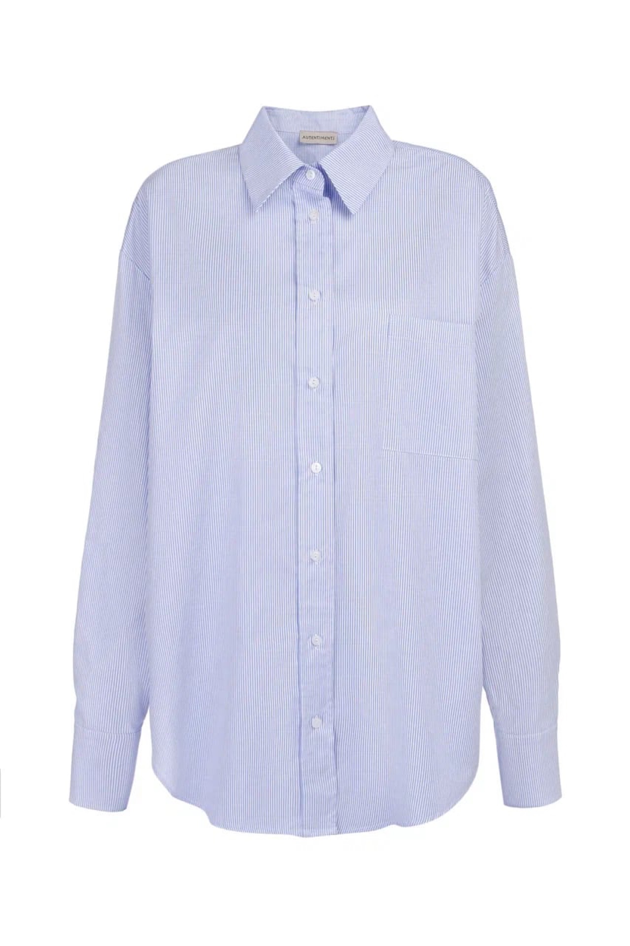 Рубашка оверсайз кроя в пижамном стиле. Модель из натурального хлопка дополнена нагрудным карманом и удлиненными рукавами.