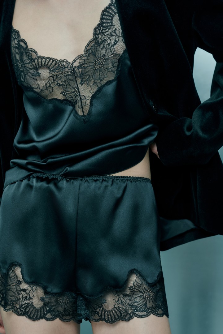 Шорты в бельевом стиле с кружевной вставкой. Модель сочетается как с топом из кружевного сета AMBROSE, так и с разными вариациями жакетов, включая APOLLO, PAPILLON и MILLENIUM из новогодней коллекции бренда.