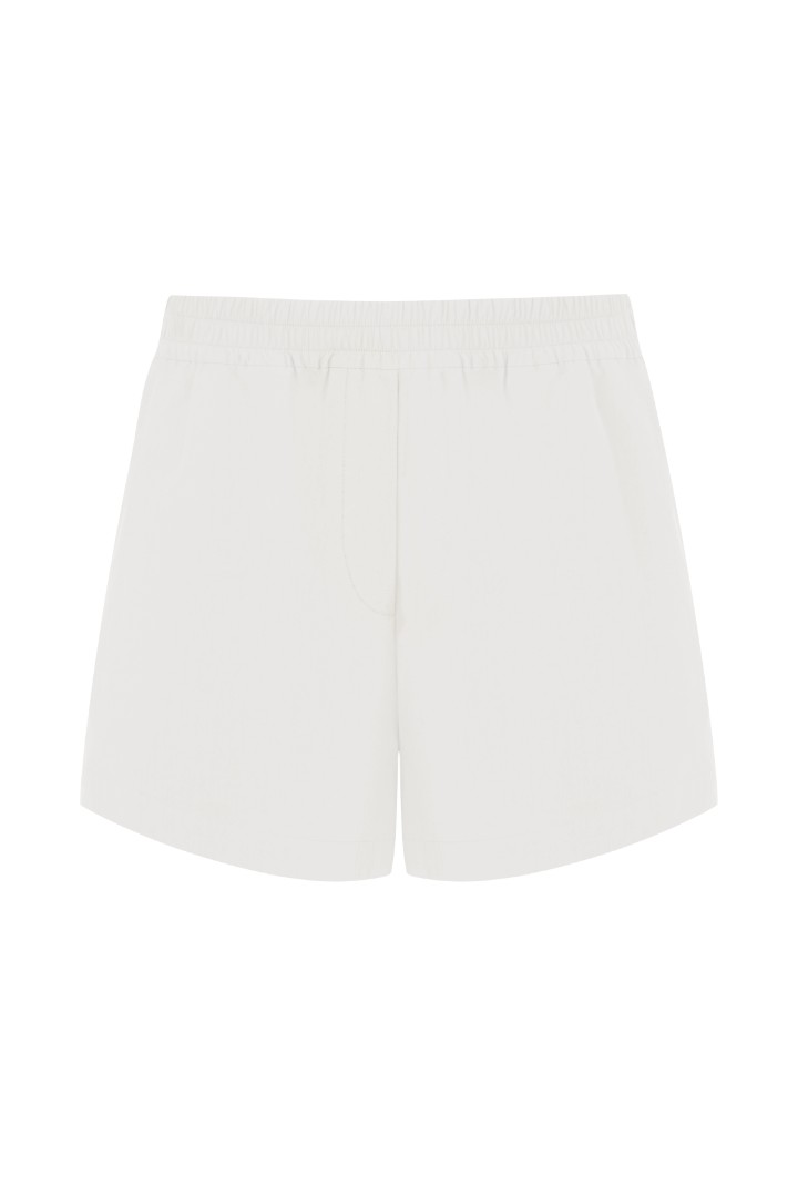 Шорты в пижамном стиле с отсылкой к мужским боксерам. Посадка на талии с эластичным поясом и декоративная ширинка с пуговицами. Модель из натурального хлопка идеально подойдет для летней жары и обеспечит комфорт на весь день.