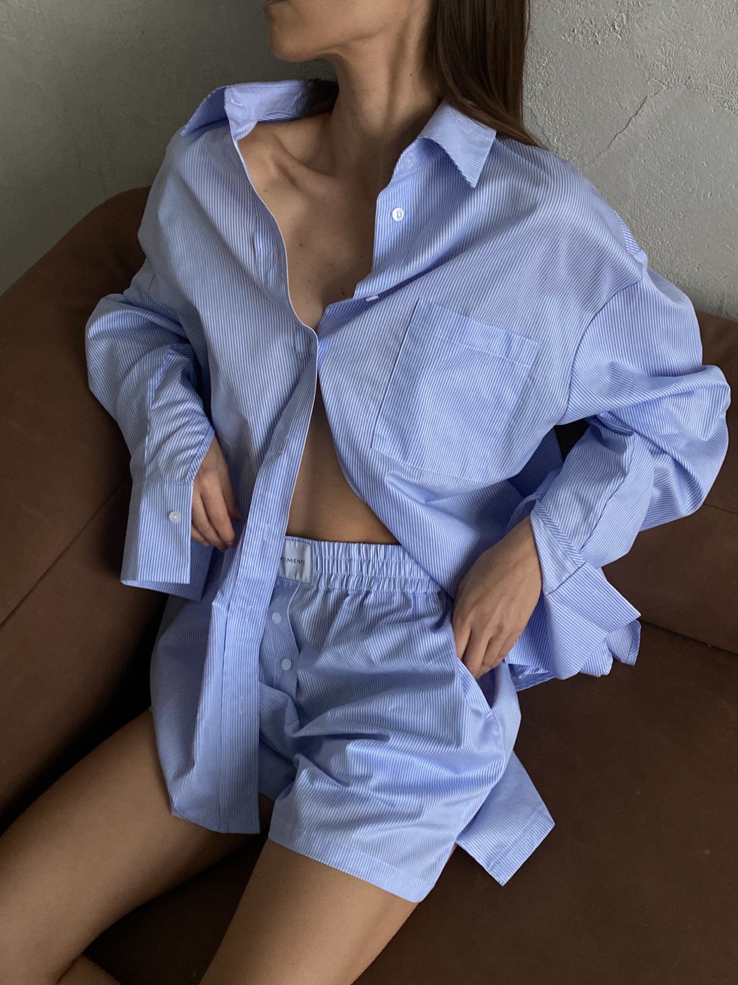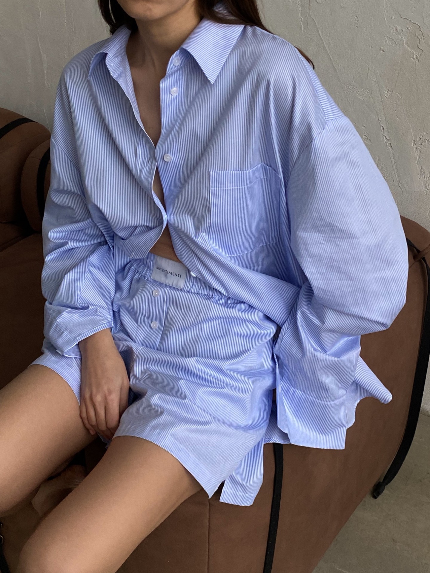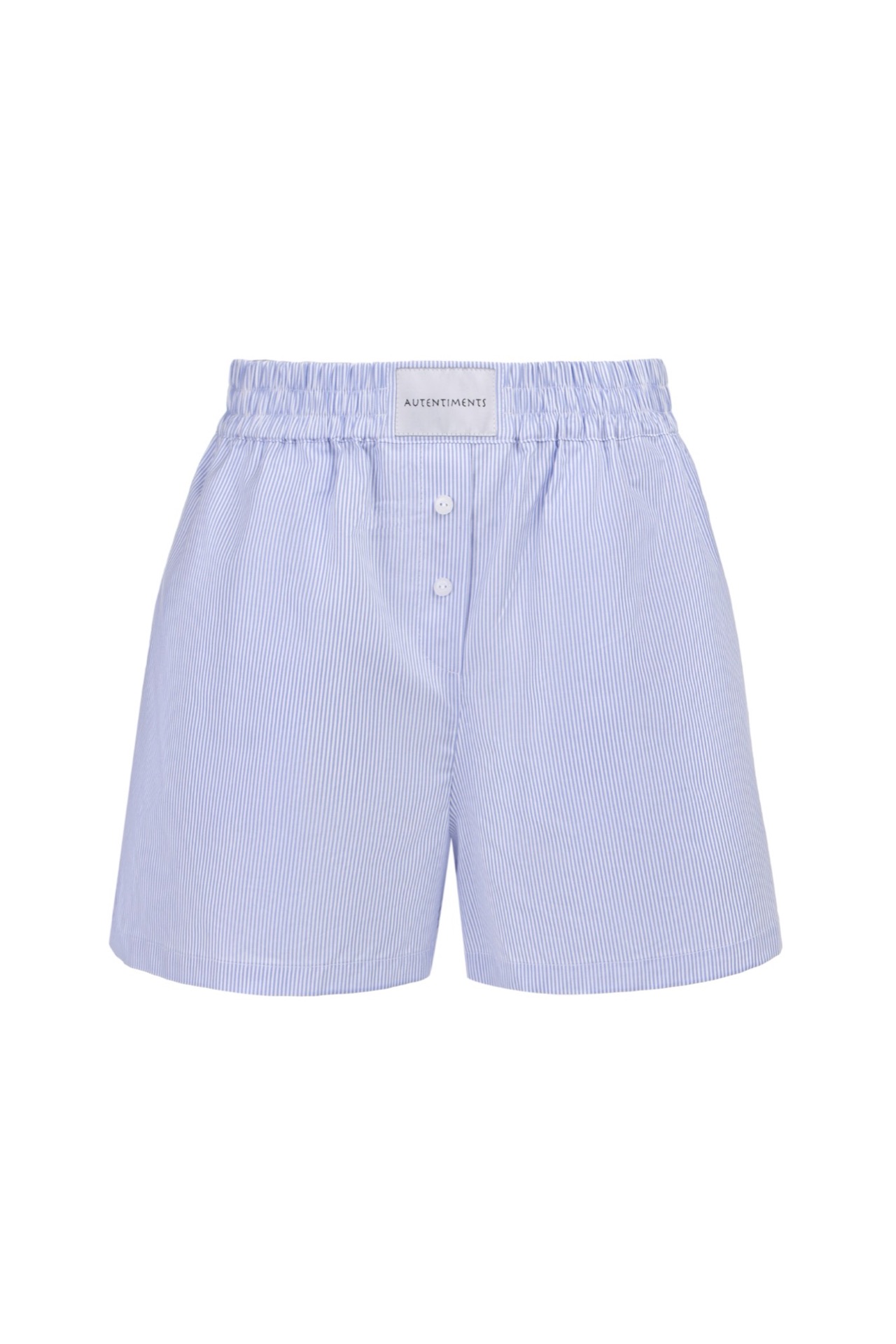 Шорты в пижамном стиле с отсылкой к мужским боксерам – одному из главных трендов сезона. Посадка на талии, эластичная резинка с шевроном Autentiments и искусственная ширинка с пуговицами.