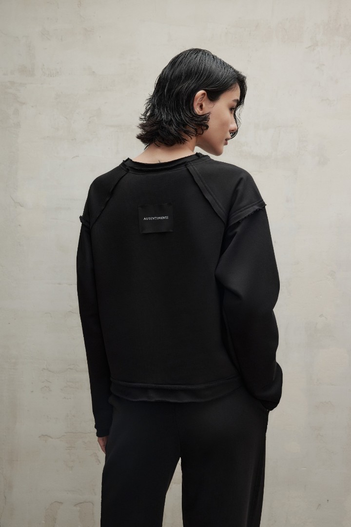 Оверсайз свитшот из мягкого трикотажа с фактурными вывернутыми швами и необработанным краем. Модель с удлиненными рукавами дополнена шевроном с логотипом Autentiments на спине. Внимательно ознакомьтесь с информацией об уходе за изделием.