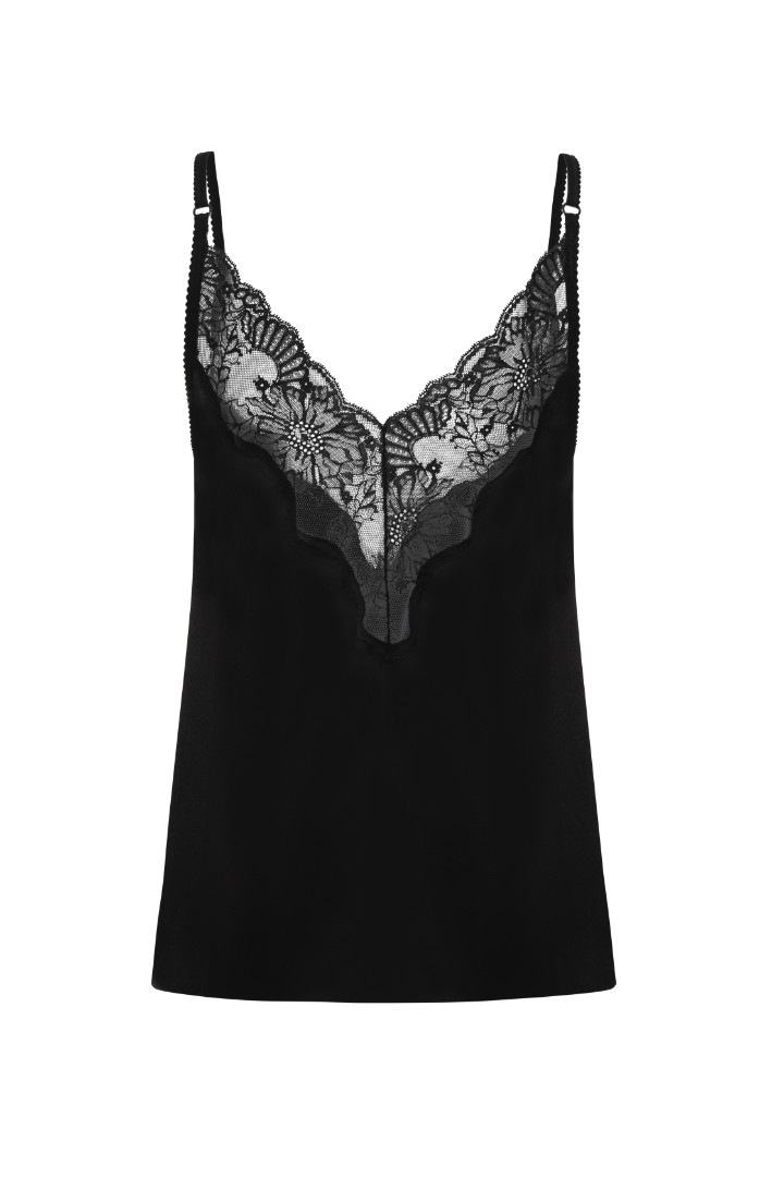 Топ в бельевом стиле на тонких бретелях с кружевной вставкой. Сочетайте с шортами AMBROSE для создания провокационного образа, и завершите его сдержанным жакетом из бархата.