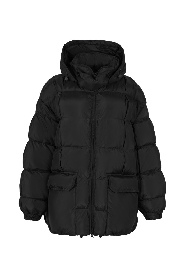 Пуховик оверсайз силуэта со спущенным плечом. Наполнитель куртки из натурального пуха и пера согреет вас даже в самый холодный зимний день. Рукава на резинке, застежка на молнию и вместительные накладные карманы с широкими клапанами.