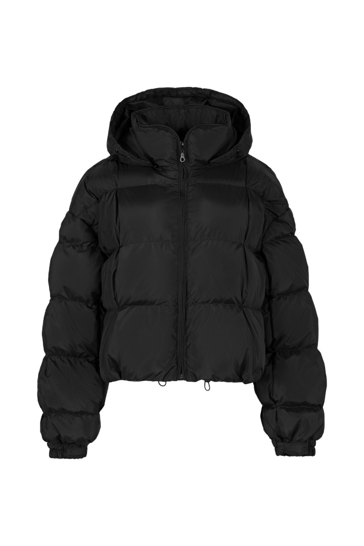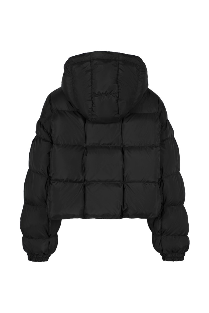 Укороченный пуховик оверсайз силуэта со спущенным плечом. Нижний край изделия дополнен резинкой, защищающей от ветра. Наполнитель куртки из натурального пуха и пера согреет вас даже в самый холодный зимний день. Рукава на резинке, застежка на молнию и съемный капюшон.