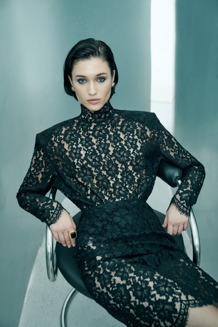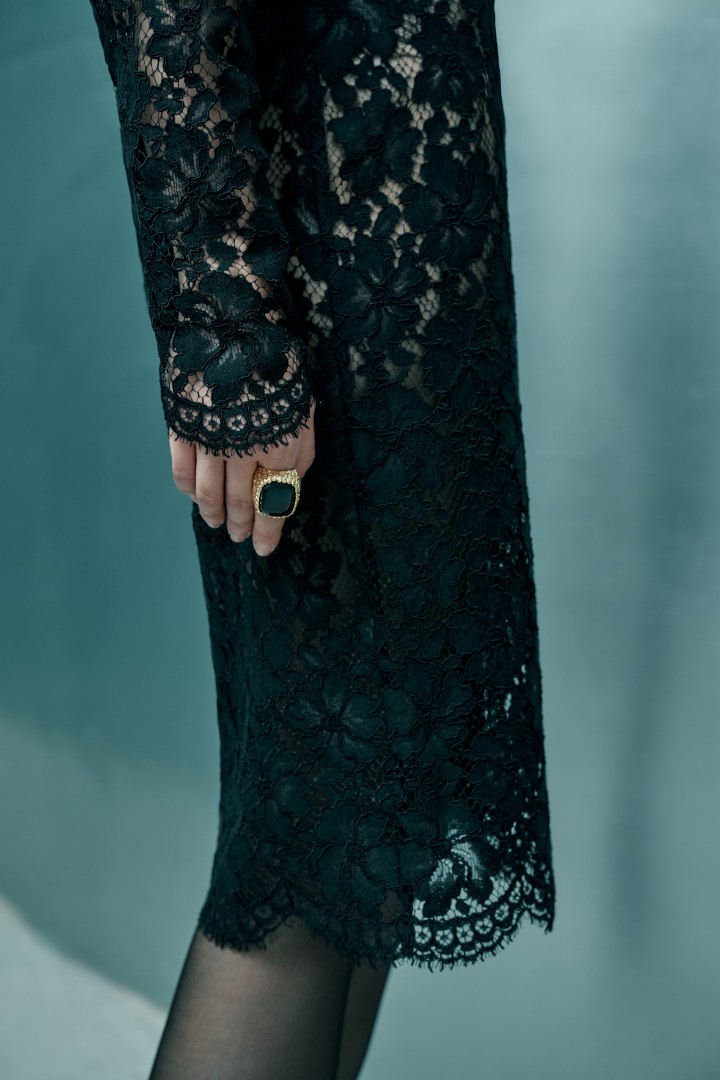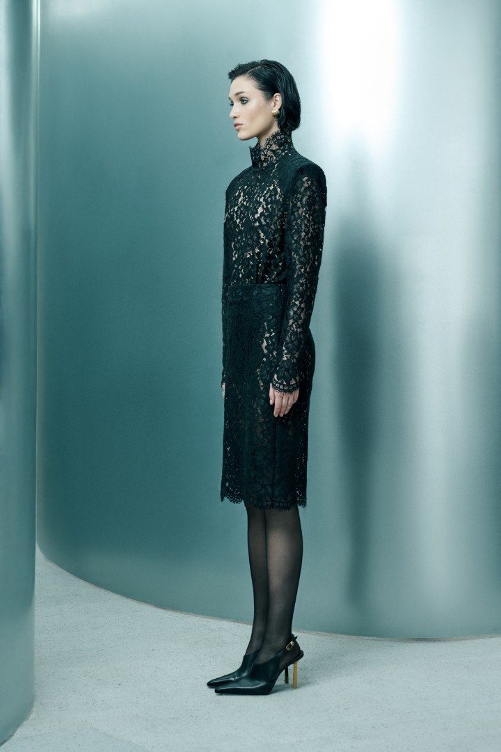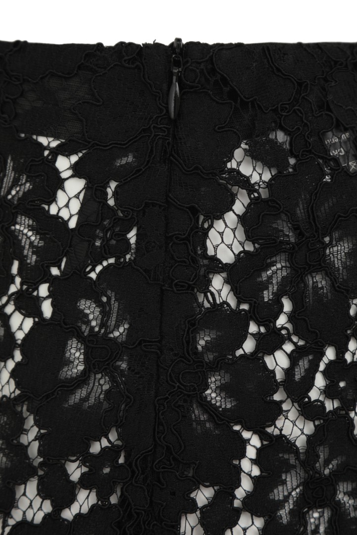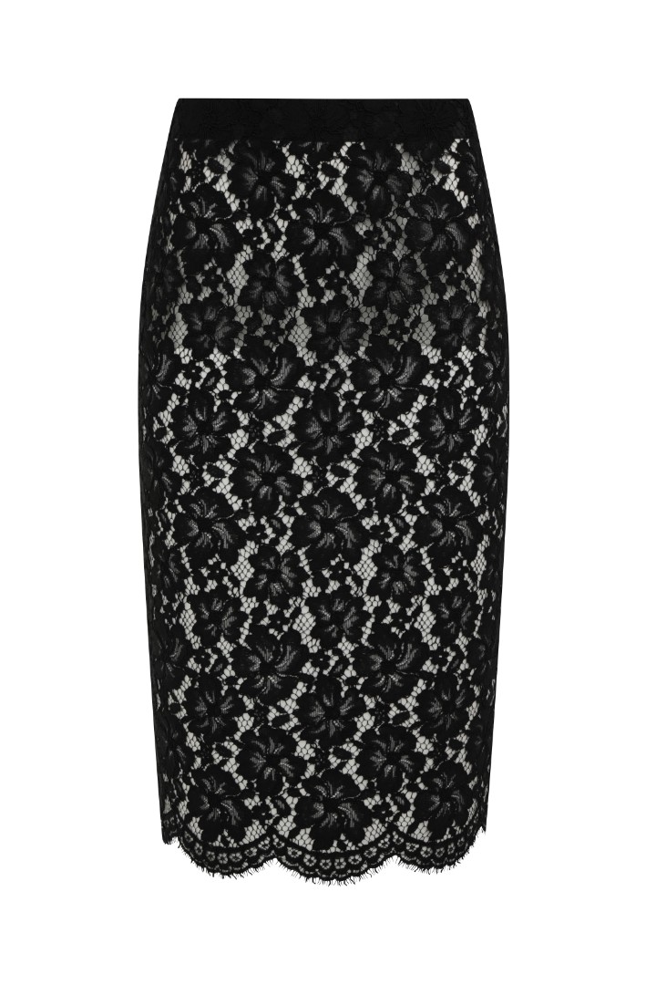 Юбка миди из полупрозрачного кружева с высокой посадкой. Изделие составит завершенный праздничный сет с боди EMPRESS из той же ткани.