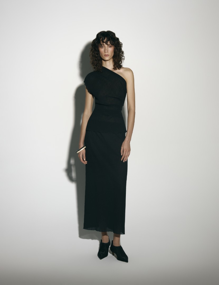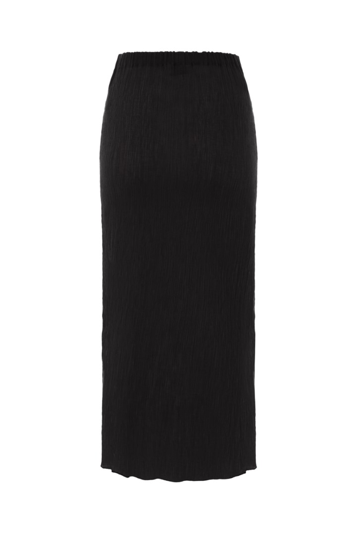 Юбка миди из фактурной жатой ткани прямого силуэта с эластичной резинкой на поясе. Изделие составит завершенный вечерний образ с топом SOULSATION и более базовое сочетание с лонгсливом DUNE из той же ткани.