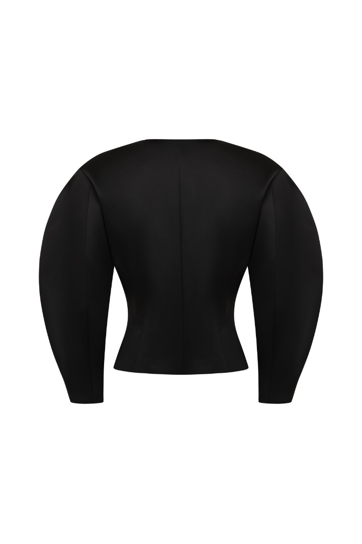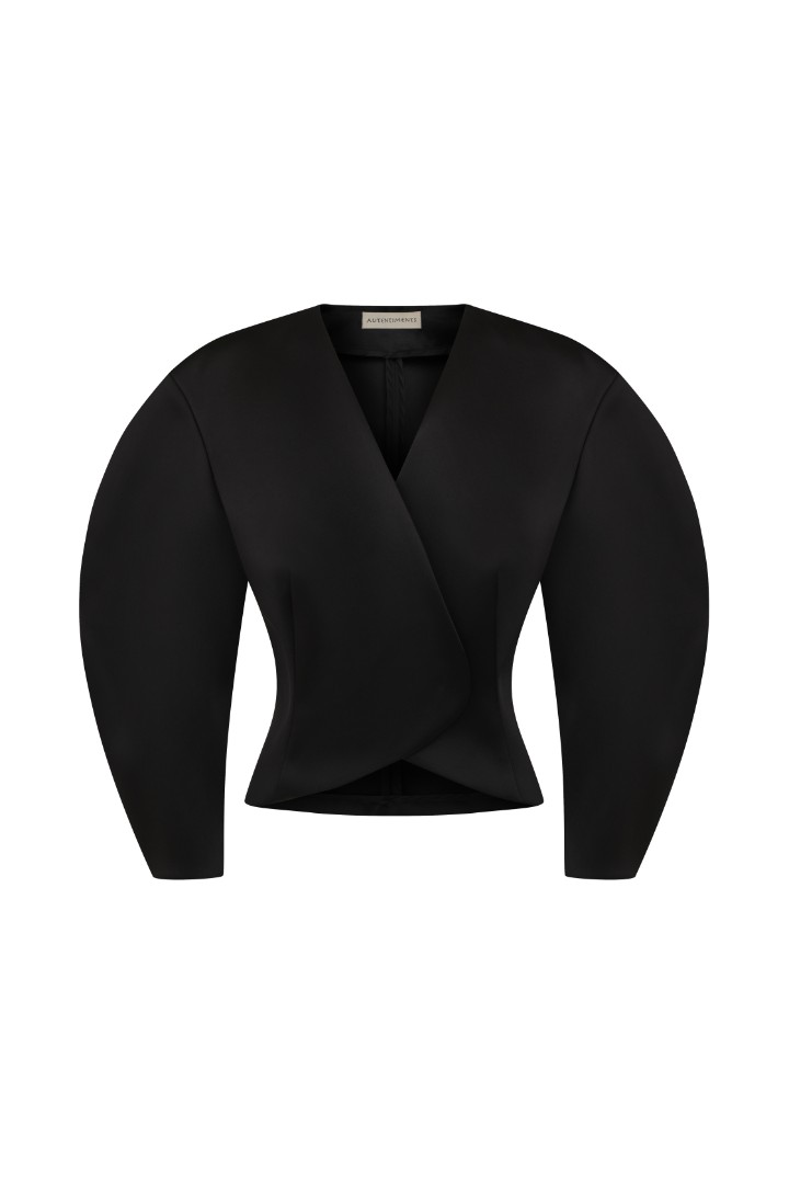 Укороченный жакет о-силуэта, который станет ключевой деталью праздничного образа. Благодаря премиальной обработке и плотной сатиновой ткани изделие хорошо держит форму и выглядит по-настоящему особенно.